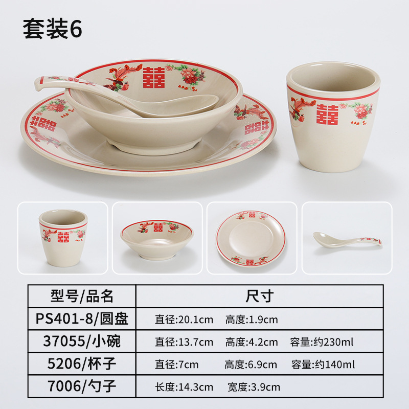 • 6 더블 행복 강화 멜라민/4피스 세트/낙하에 더 강함