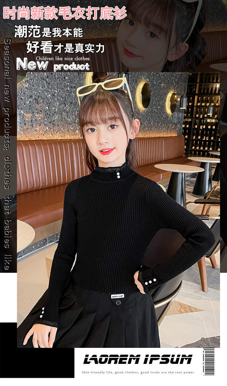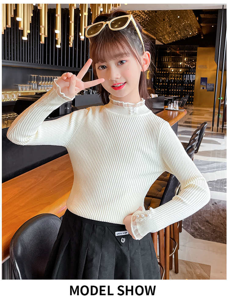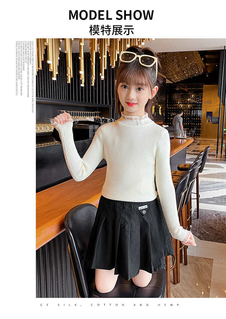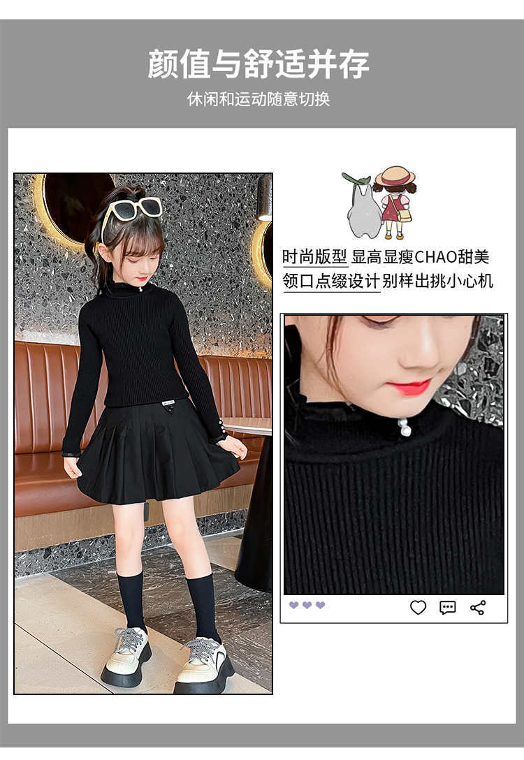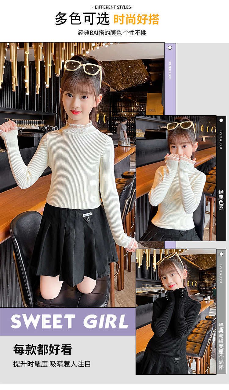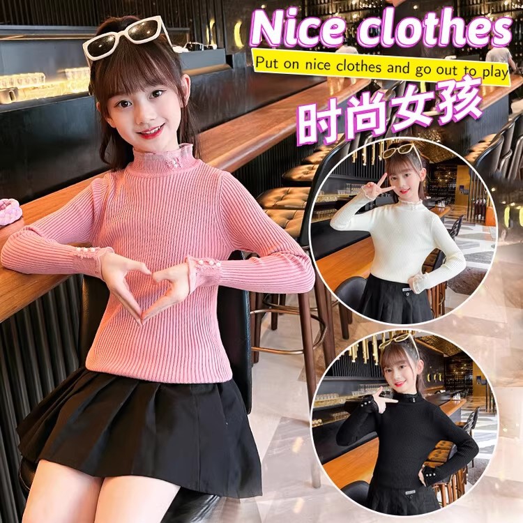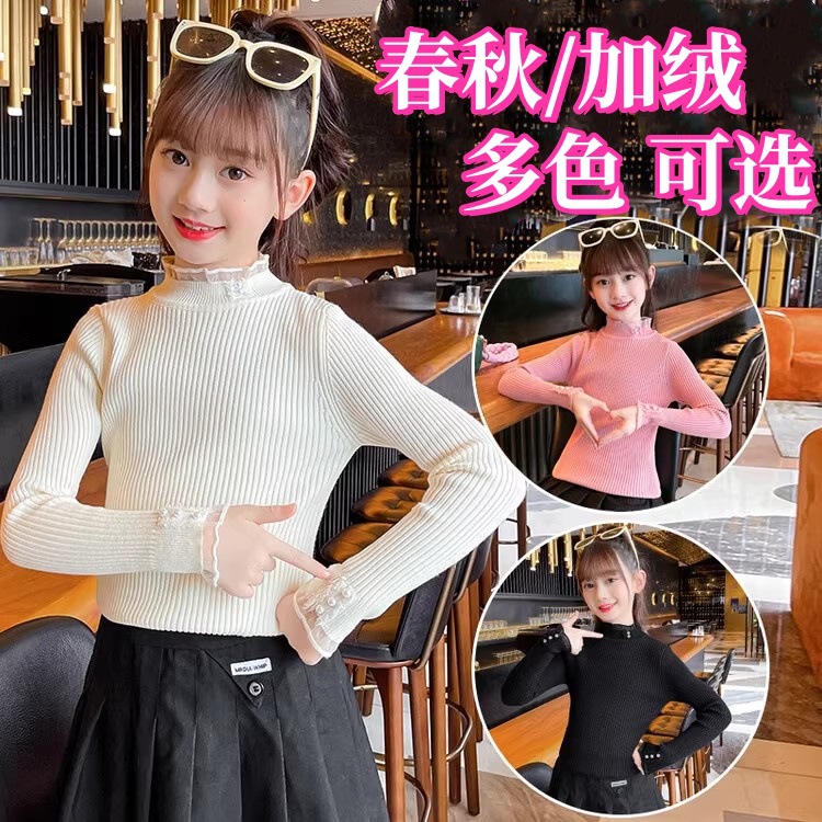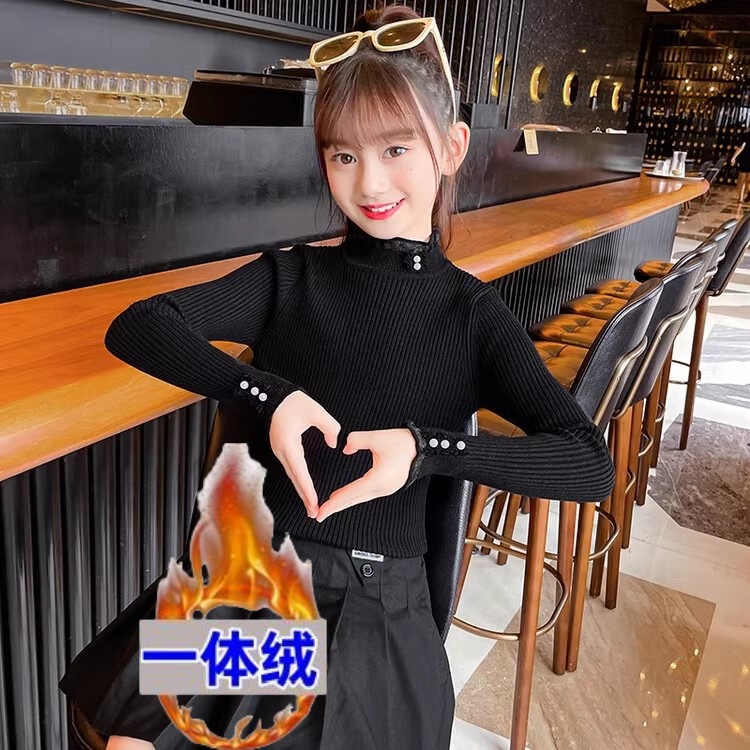 2024 가을과 겨울 새로운 소녀 기모 원피스 벨벳 스웨터 큰 어린이 니트 베이스 셔츠 조수 봄과 가을스토어 가기