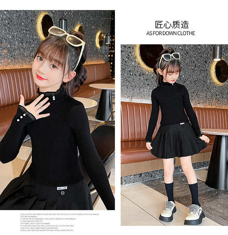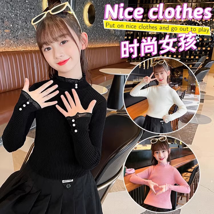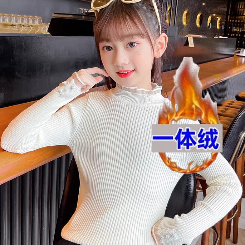 2024 가을과 겨울 새로운 소녀 기모 원피스 벨벳 스웨터 큰 어린이 니트 베이스 셔츠 조수 봄과 가을