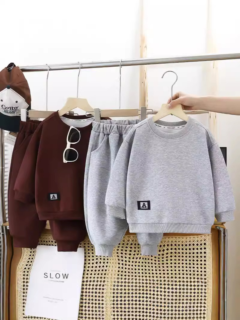 소년 스웨트 셔츠 세트 봄 가을과 겨울 2024 새로운 어린이 빅 보이즈 스포츠 탑 스웨트 셔츠 투피스 세트스토어 가기