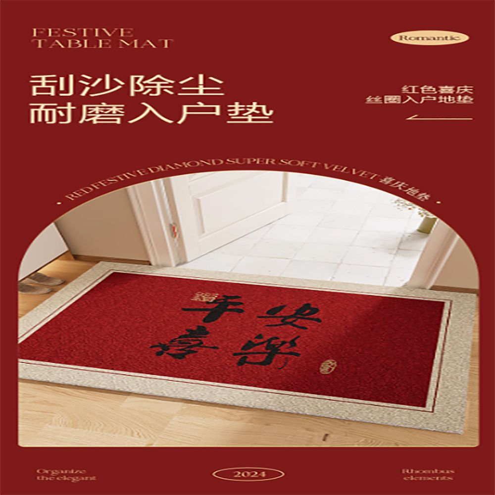 입구 문 매트 고급 센스 새로운 중국 스타일 입구 안전 빨간 실크 링 발 매트 홈 도어 먼지 방지 미끄럼 방지 매트