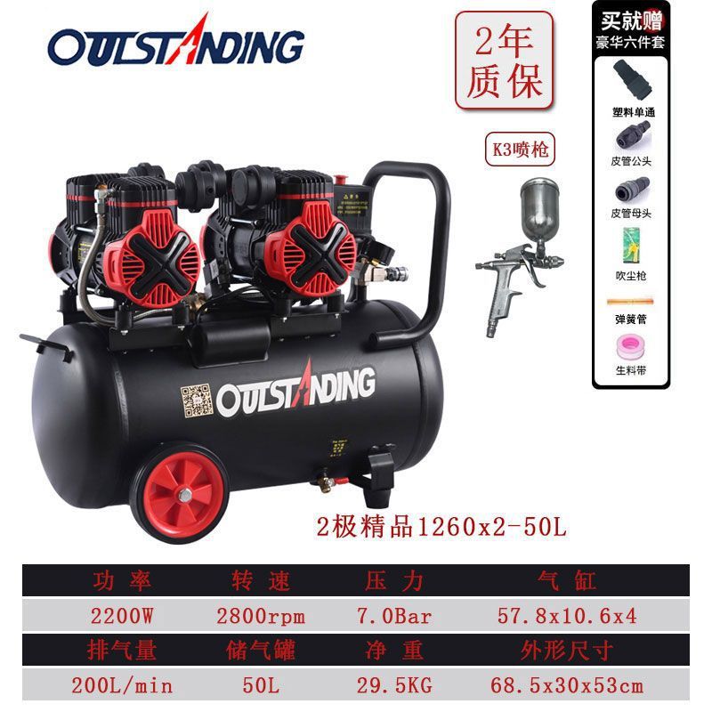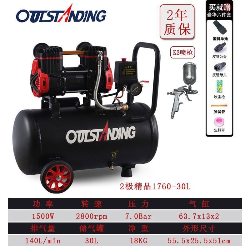 새로운 공기 압축기 작은 공기 압축기 풍선 기름없는 음소거 목공 220V 페인트 펌프스토어 가기
