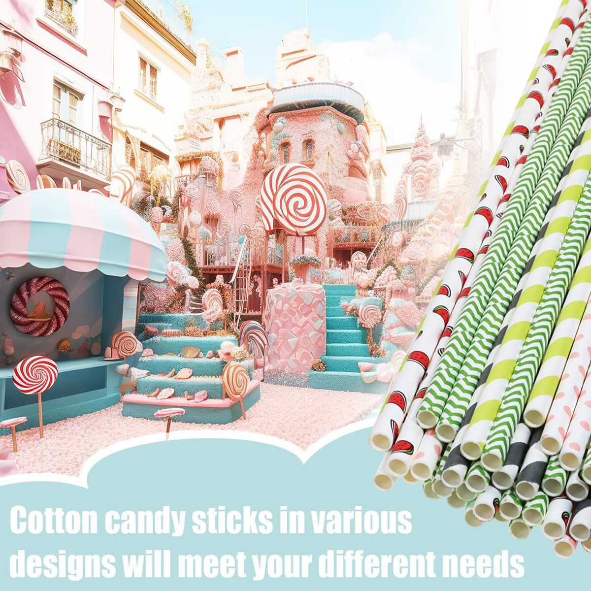 6*350MM 생분해 성 멋진 솜사탕 기계 종이 스틱 일회용 솜사탕 종이 스틱 휴일 장식 100 팩