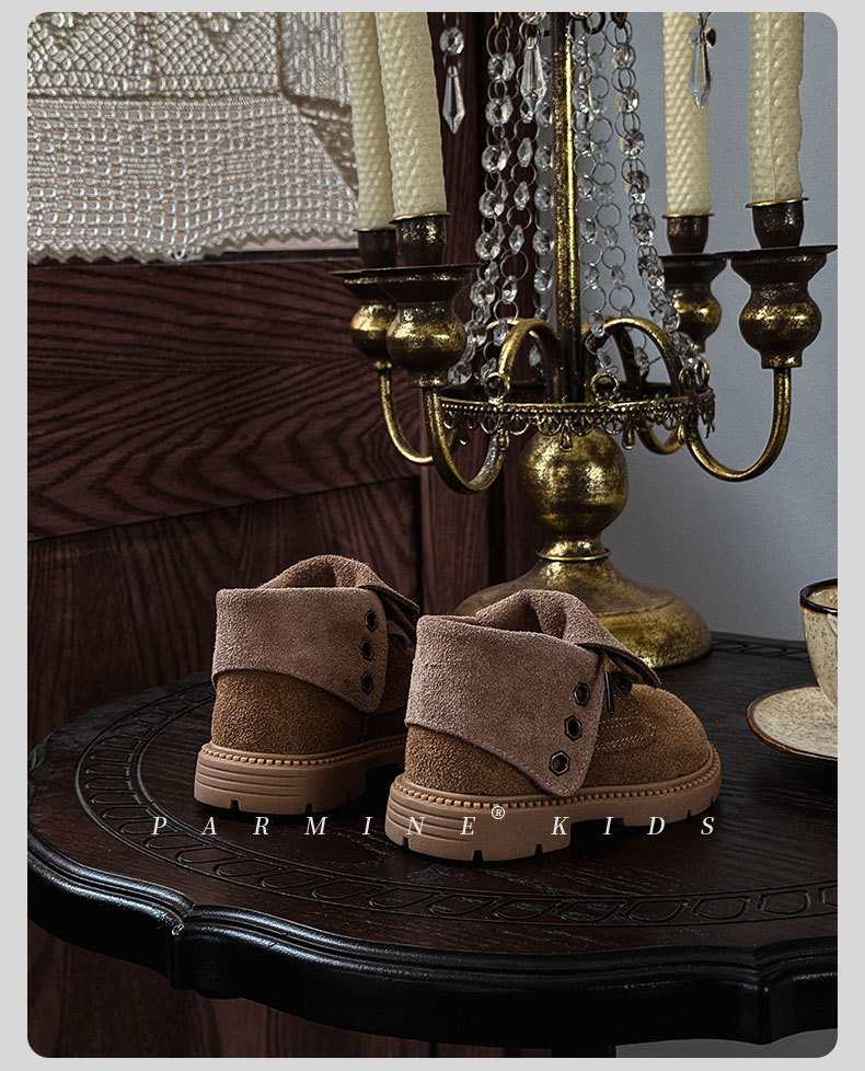 정품 가죽 여자 어린이 영국 레트로 스타일 작은 노란색 부츠 가을 겨울 2025 신상 여자 아기 패셔너블 마틴 부츠 가죽 부츠