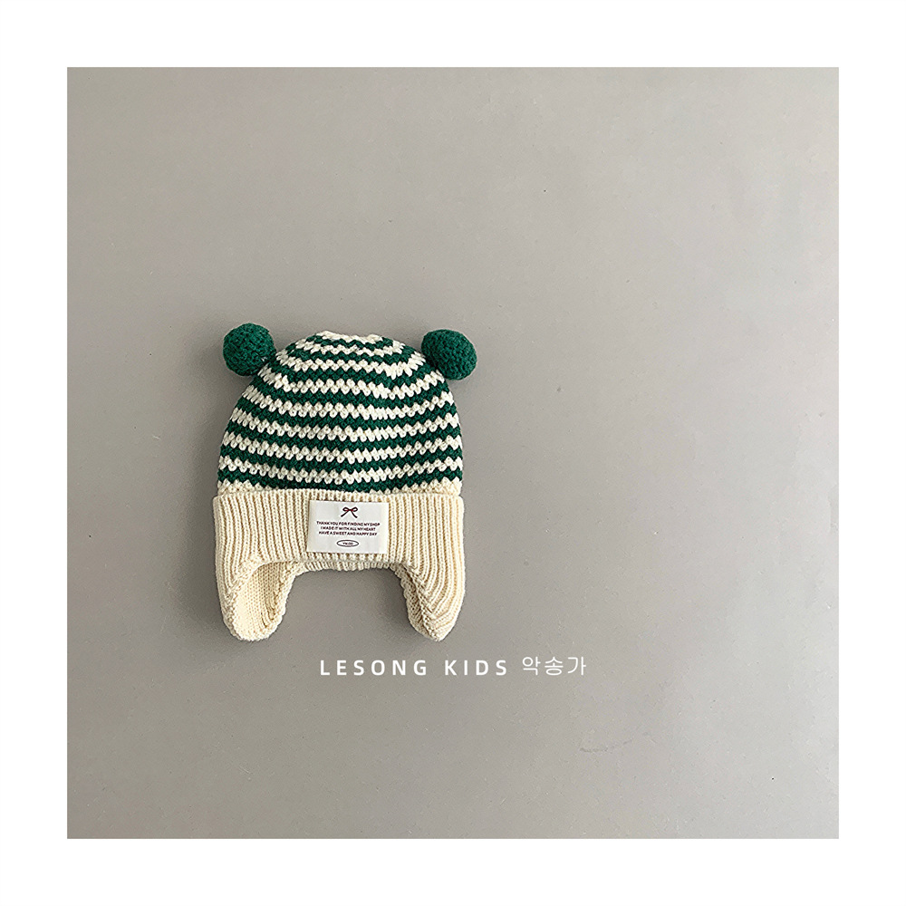 • 작은 모피 볼 줄무늬 귀 보호 모자 녹색
