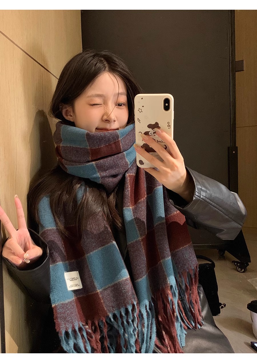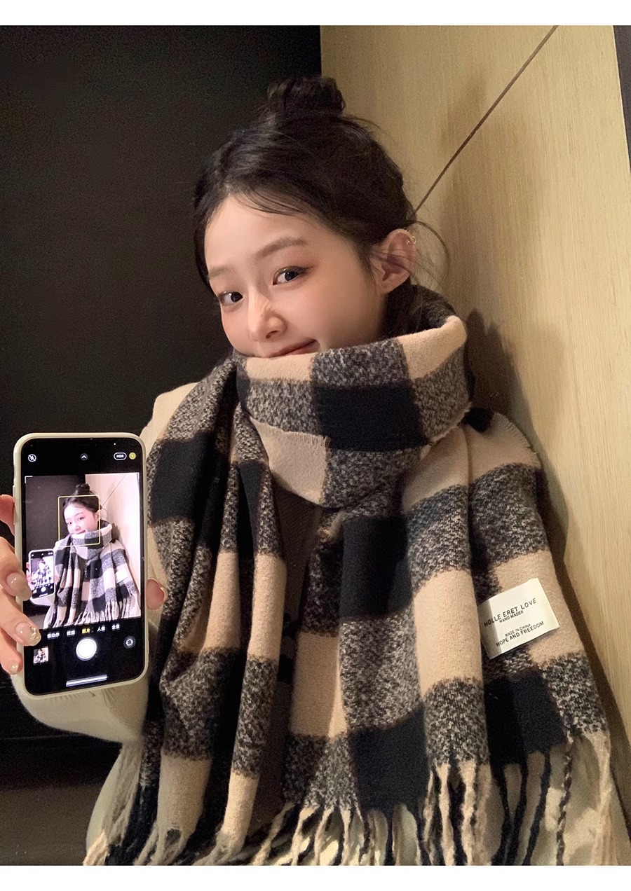 올 매치 스카프 겨울 고급 2024 새 격자 무늬 커플 따뜻한 한국 스타일 두꺼운 학생 목도리 스카프 남녀스토어 가기