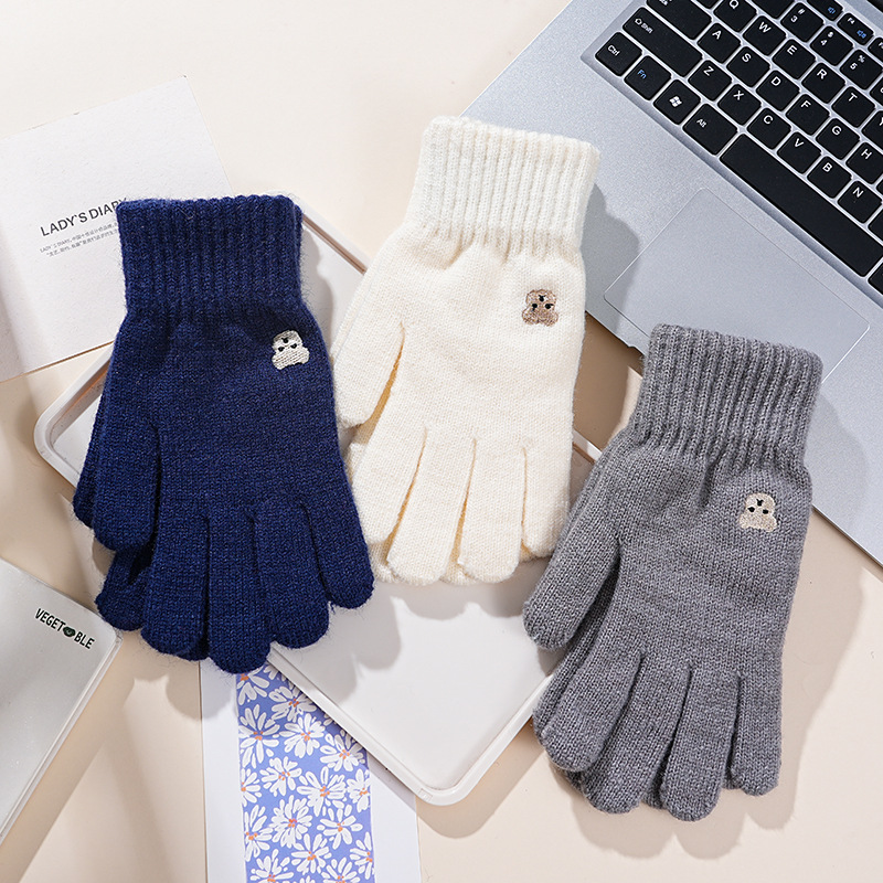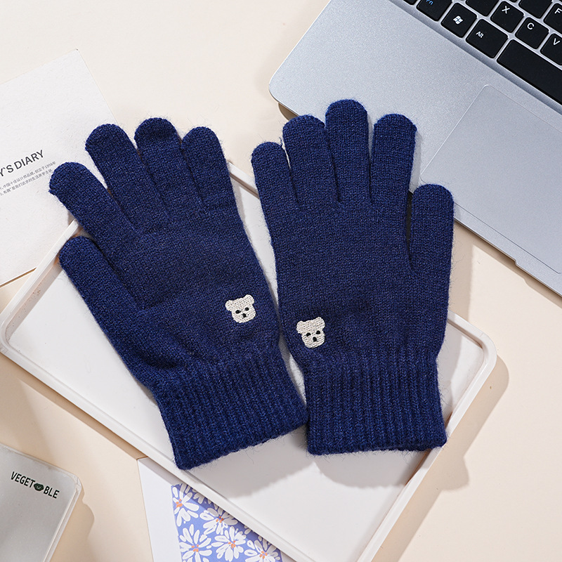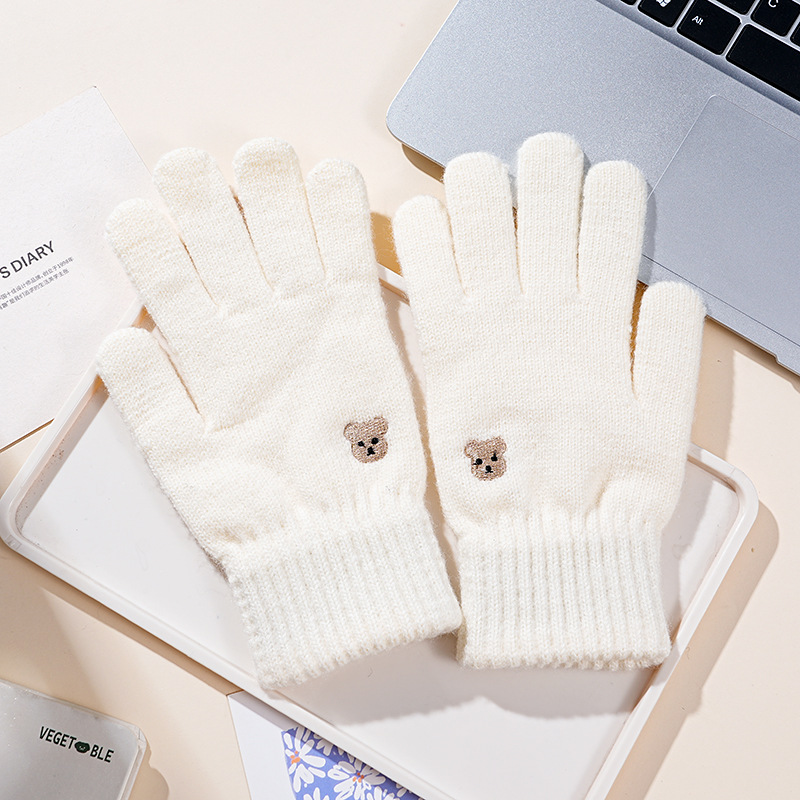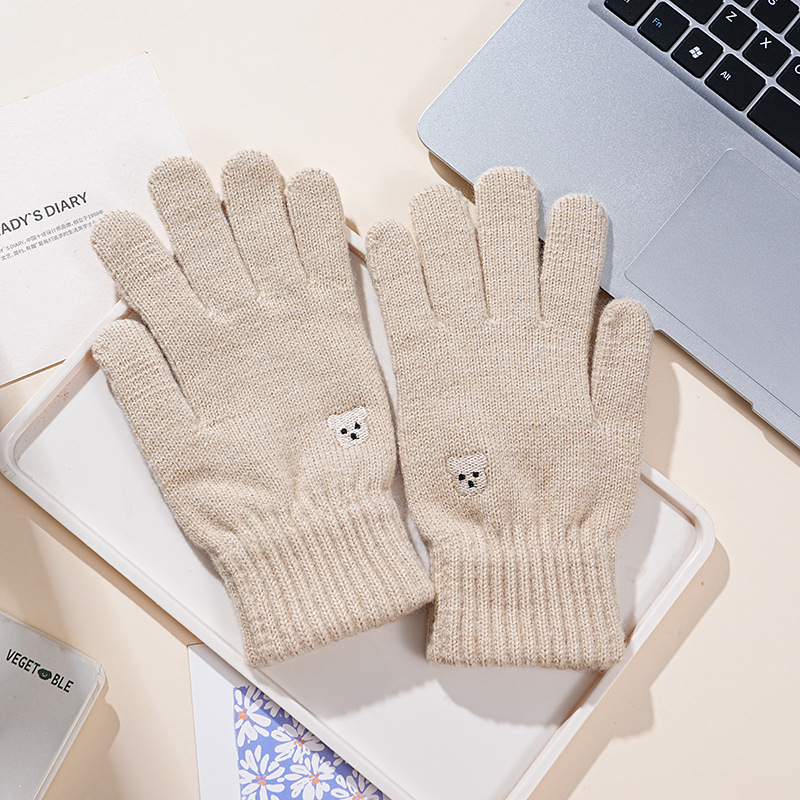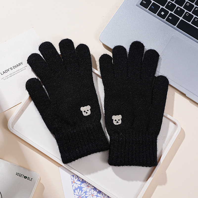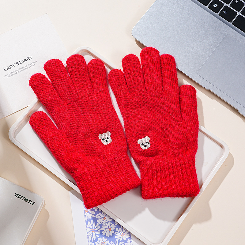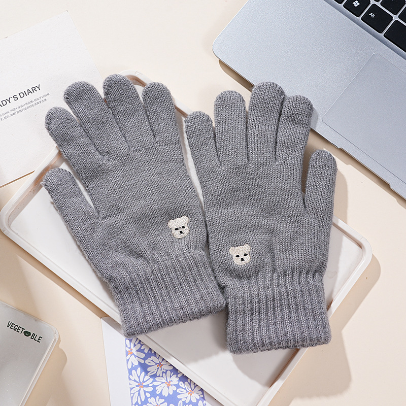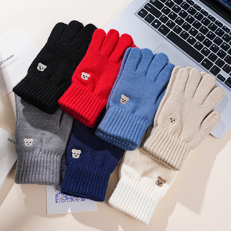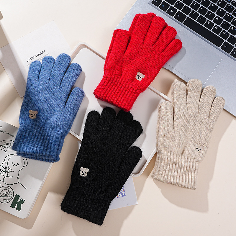 국경 간 귀여운 곰 장갑 여성 니트 터치 스크린 학생 장갑 가을과 겨울 조커 두꺼운 따뜻한 장갑 도매
