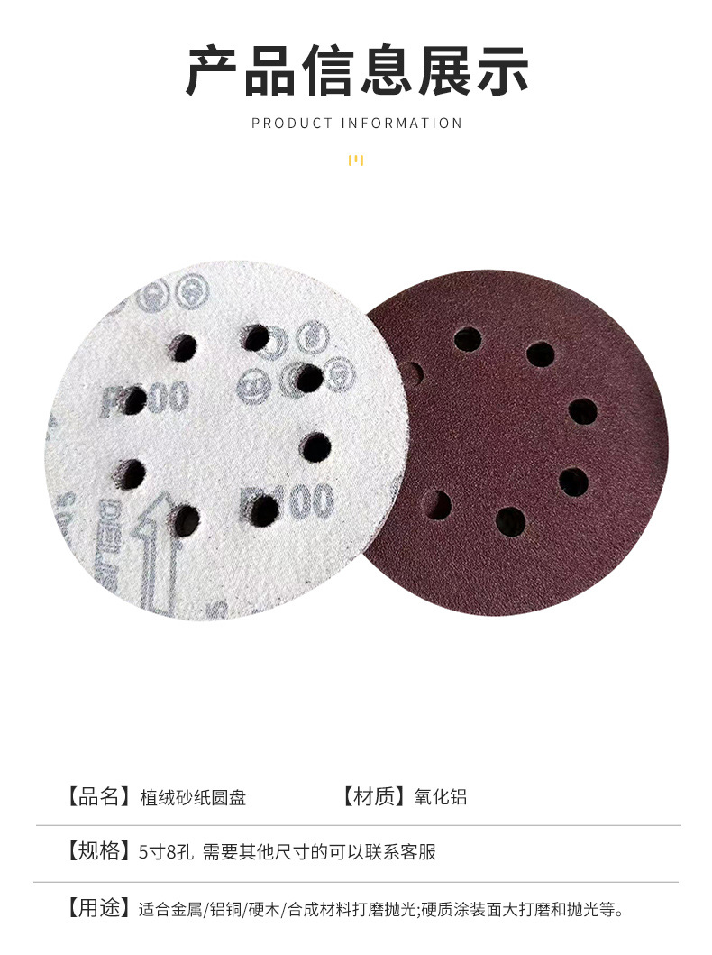 8 홀 사포 그릿 균일 한 라운드 자체 접착 건조 연삭 폴리싱 진공 페인트 표면 연마 흰색 샌드페이퍼 린트 쉽지 않음