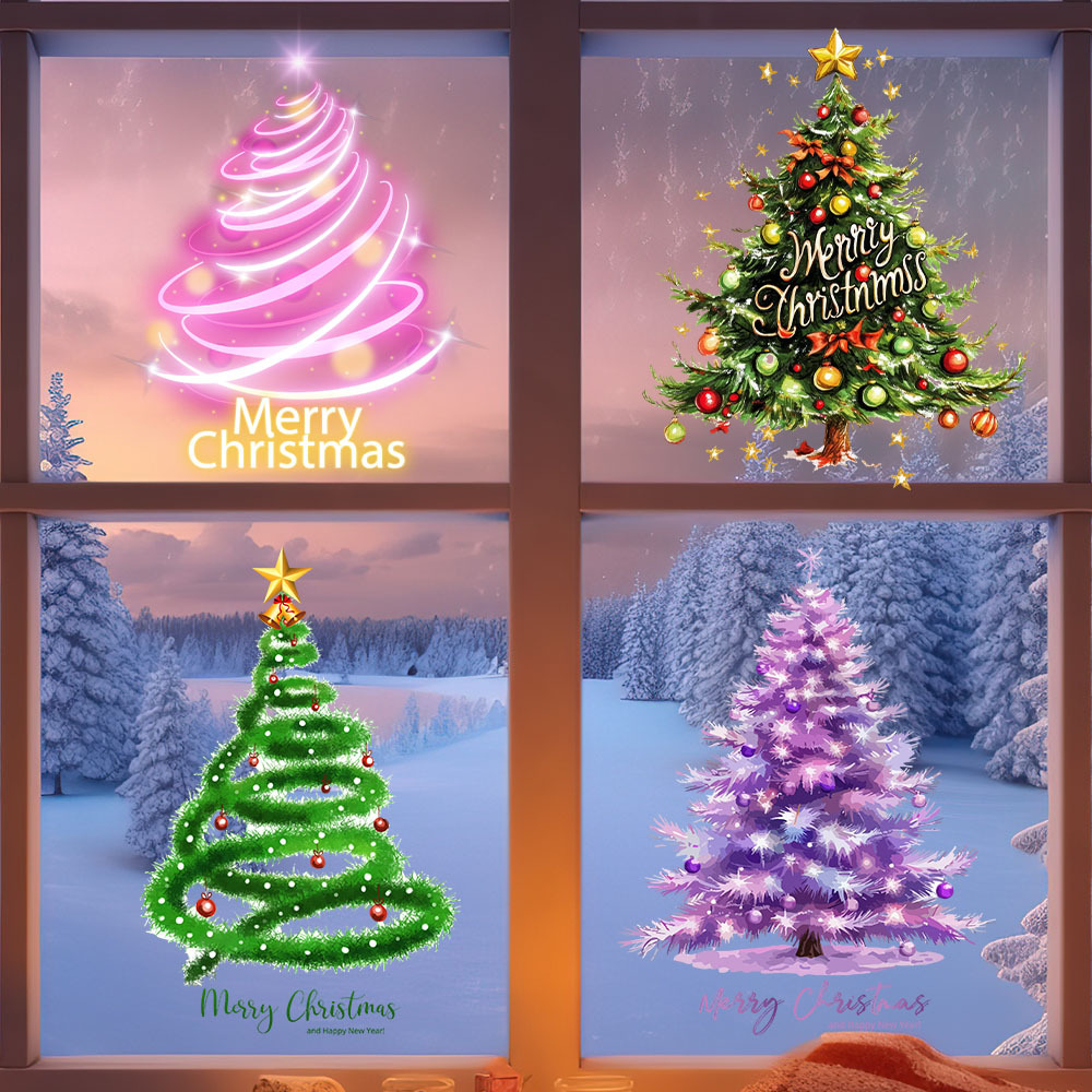 Yiyao JD3418 크리스마스 3d 크리스마스 트리 조합 유리 스티커 발코니 분위기 장식 접착제없는 정전기 스티커