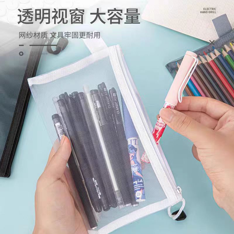 투명한 메쉬 연필 케이스 학생 시험 휴대용 연필 가방 문구 가방 도매를위한 대용량 지퍼 보관 가방