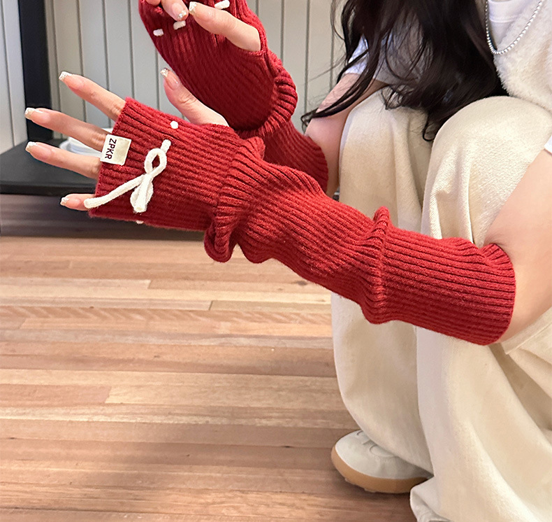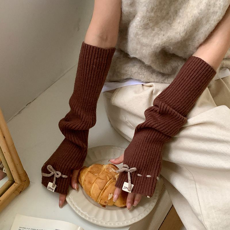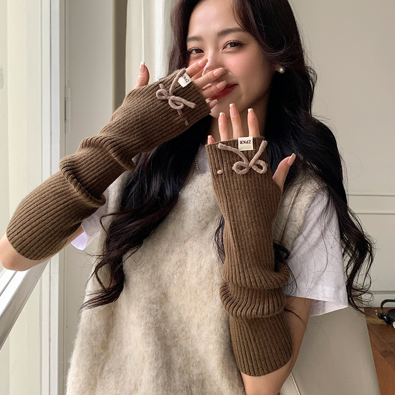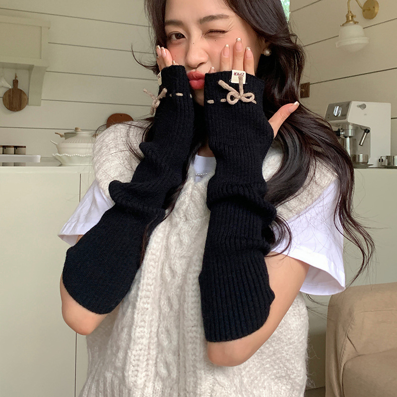 겨울 긴 반 손가락 장갑 여성의 가을과 겨울 학생의 베개 소매 활 손가락 노출 양모 니트 따뜻한 장갑