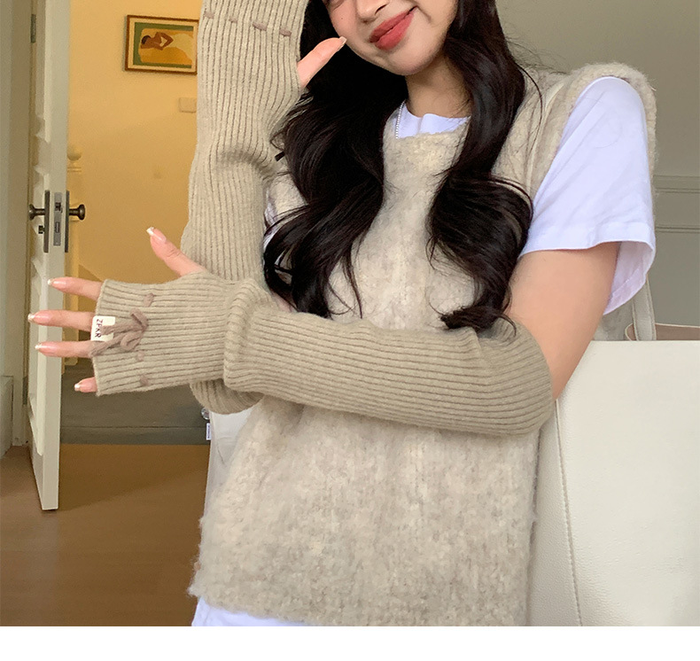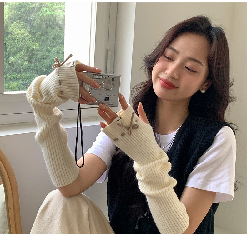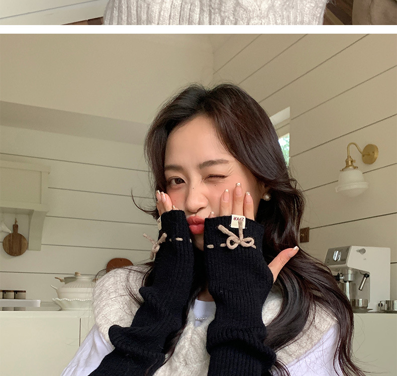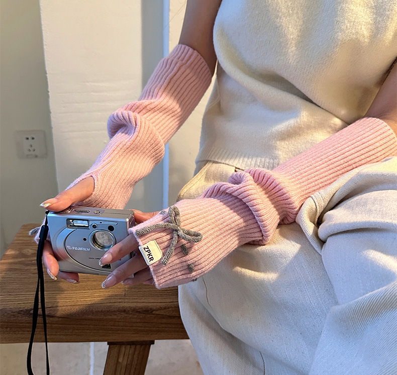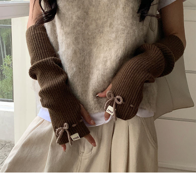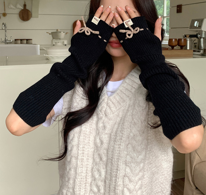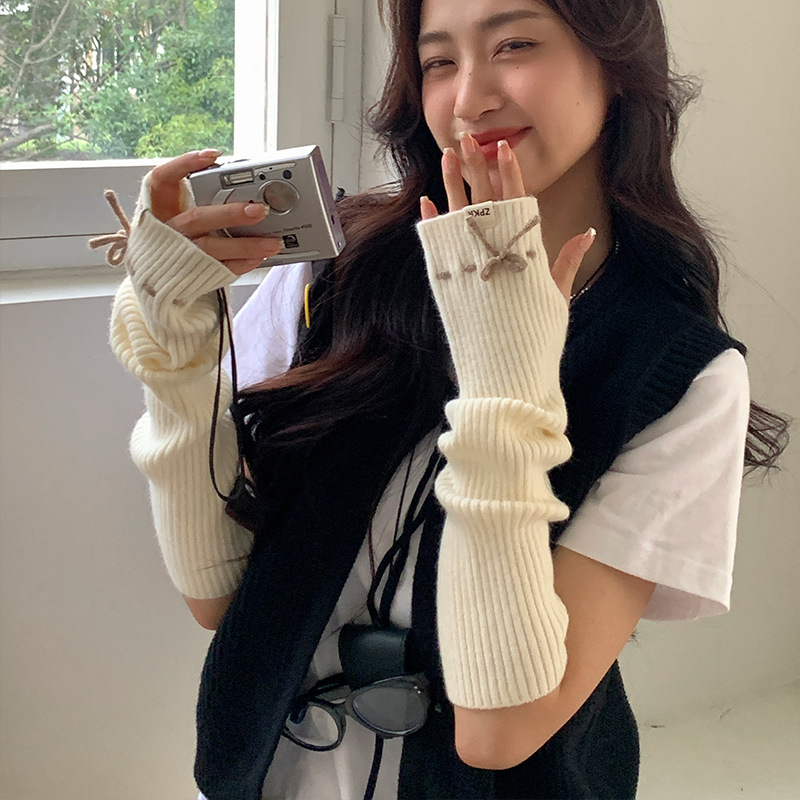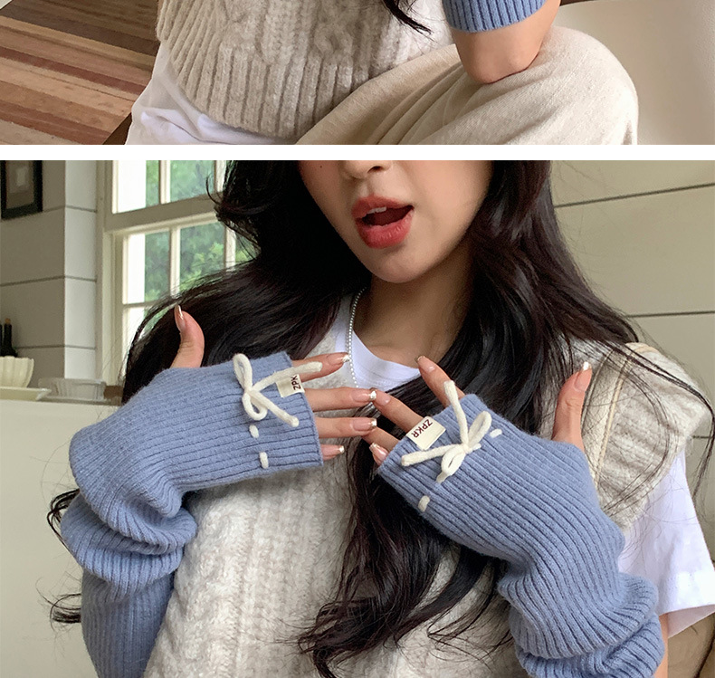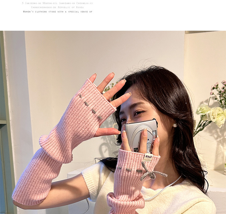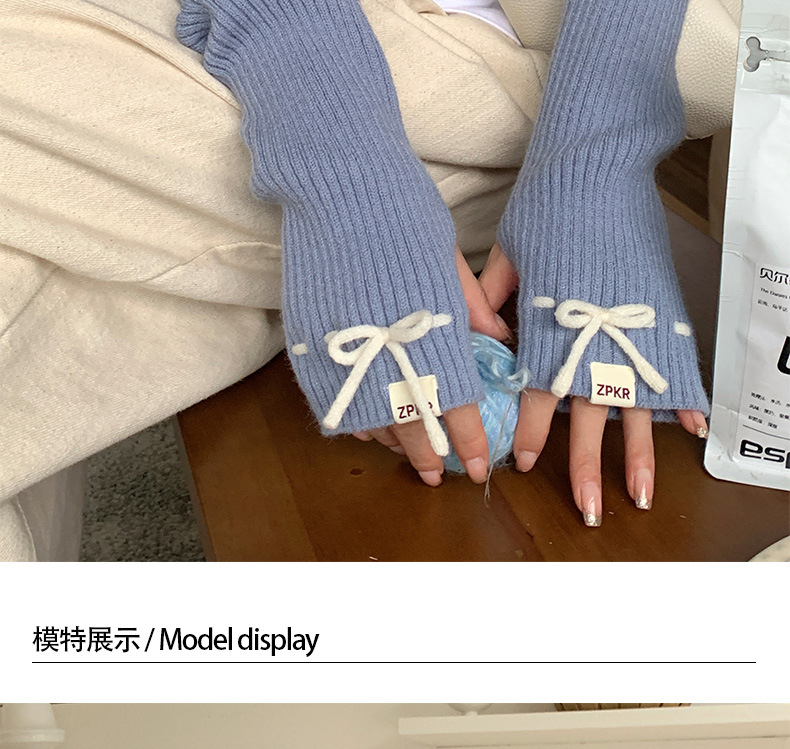 겨울 긴 반 손가락 장갑 여성의 가을과 겨울 학생의 베개 소매 활 손가락 노출 양모 니트 따뜻한 장갑스토어 가기
