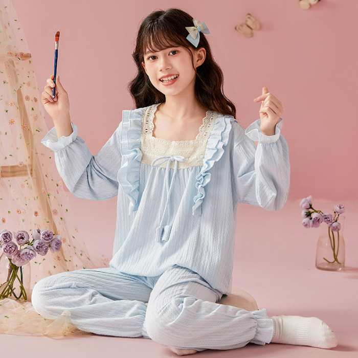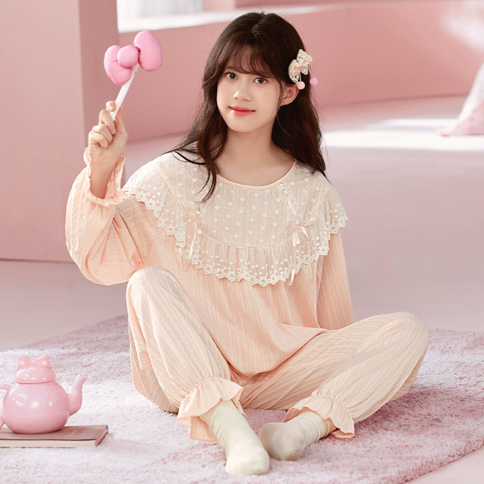女童睡衣春秋季宫廷风2024新款长袖棉公主女孩儿童中大童家居服