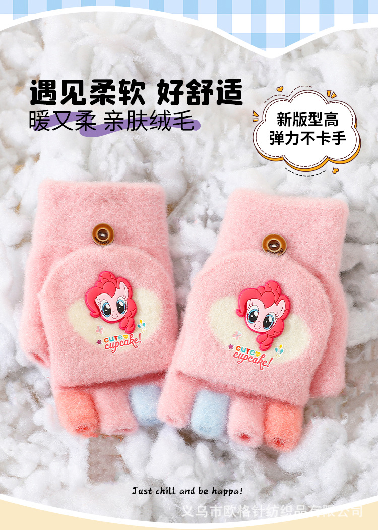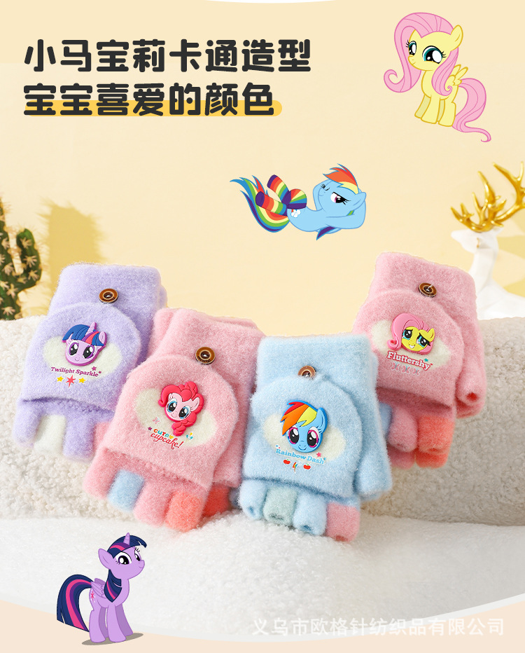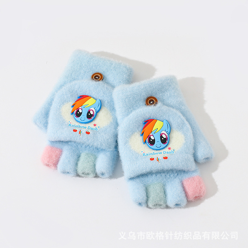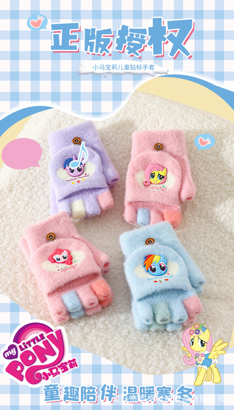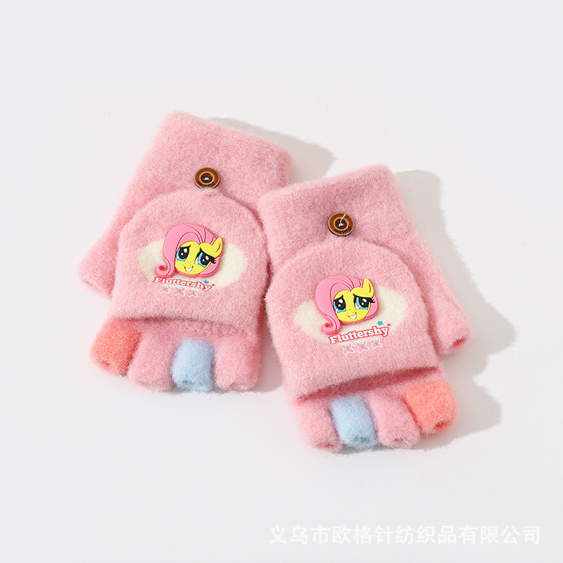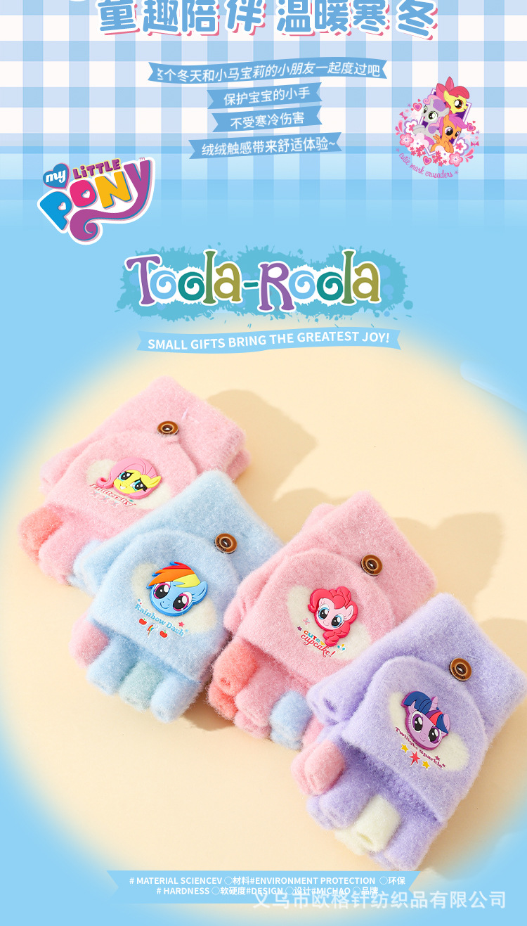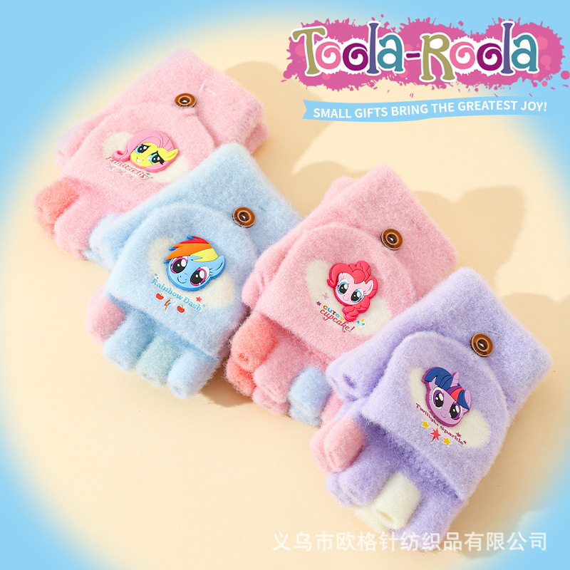 조랑말 폴리 정품 공인 어린이 하프 핑거 플립 커버 소년 소녀 용 장갑 따뜻한 방귀 니트 장갑
