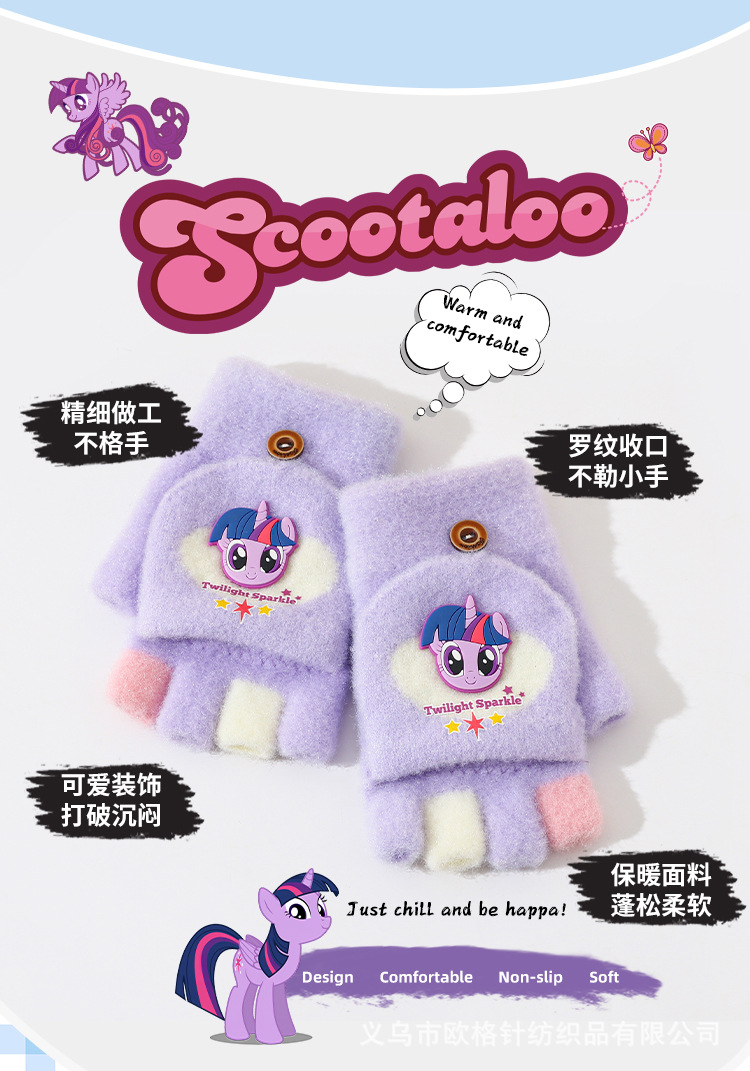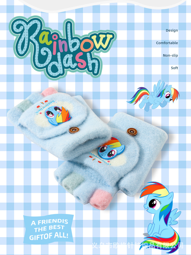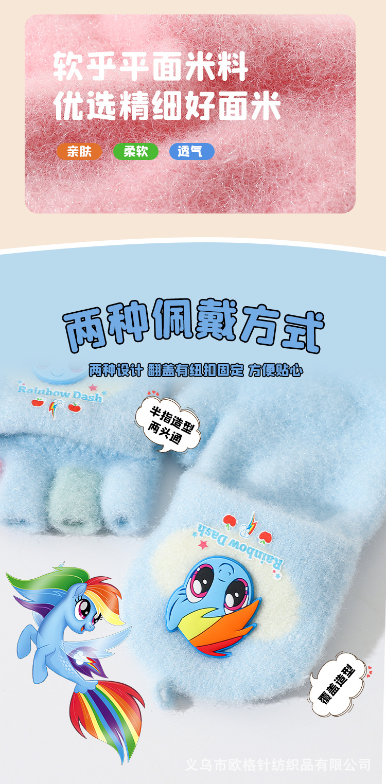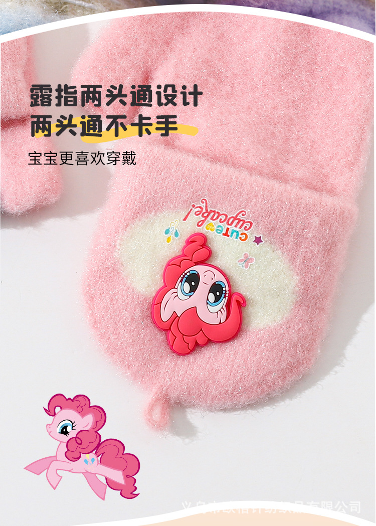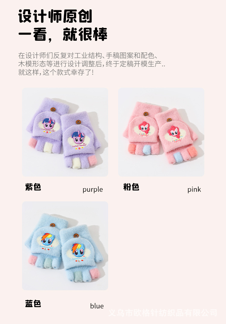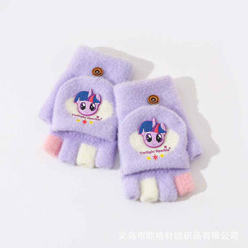조랑말 폴리 정품 공인 어린이 하프 핑거 플립 커버 소년 소녀 용 장갑 따뜻한 방귀 니트 장갑