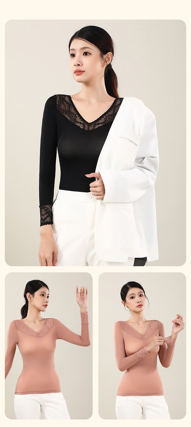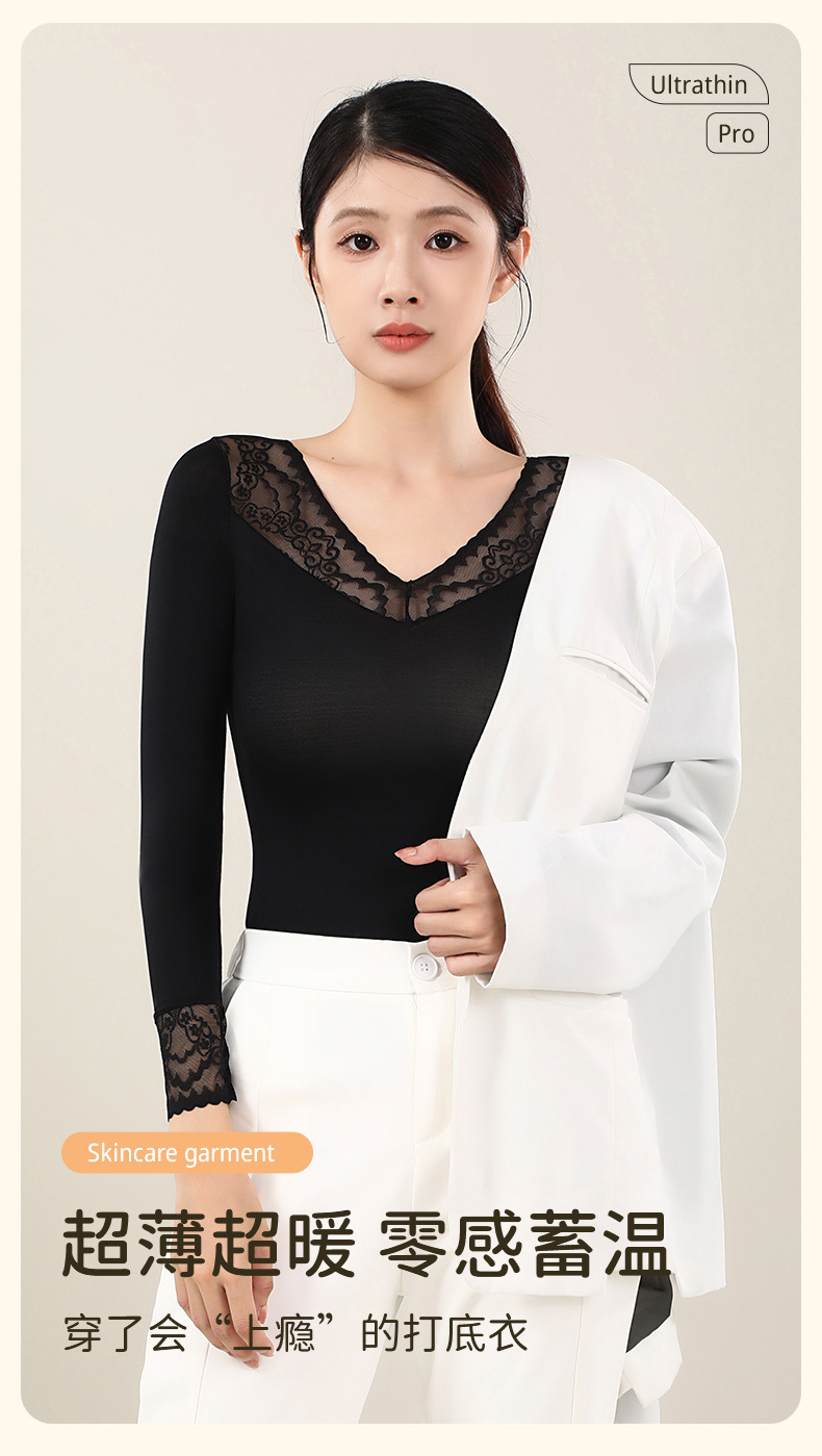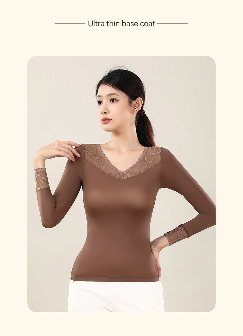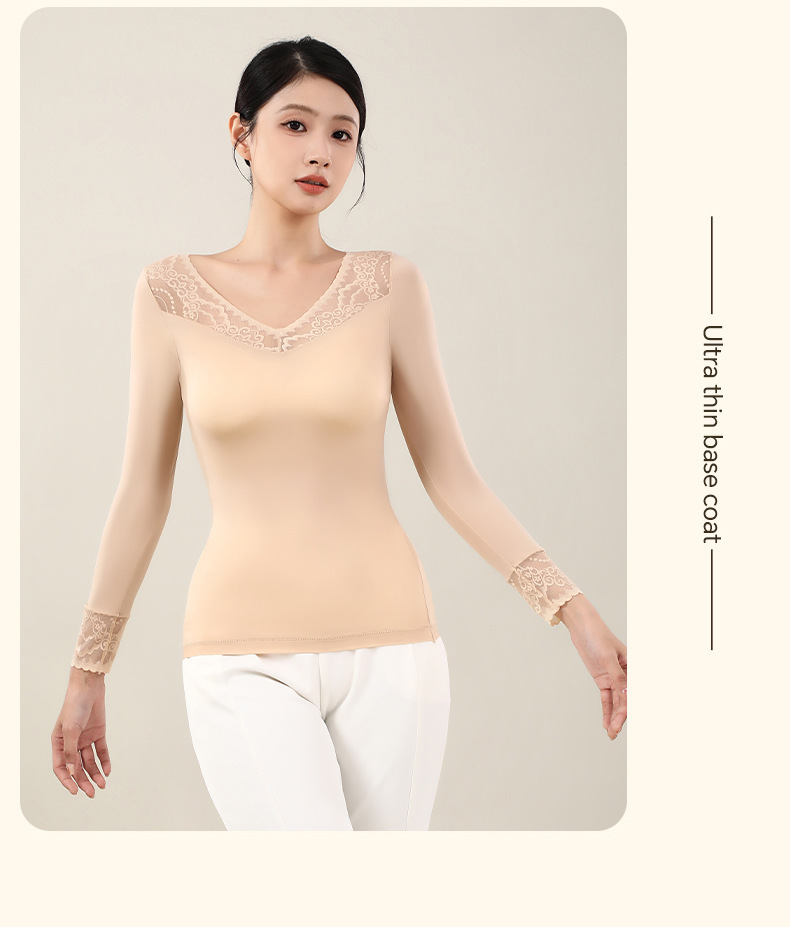 새로운 초박형 피부-미화 의류 슈퍼 따뜻한 보관 따뜻한 레이스 따뜻한 옷베이스 코트 여성의 원활한 보이지 않는 올매치 알몸 탑