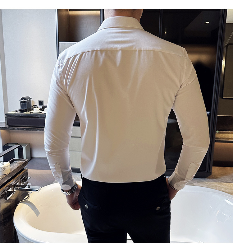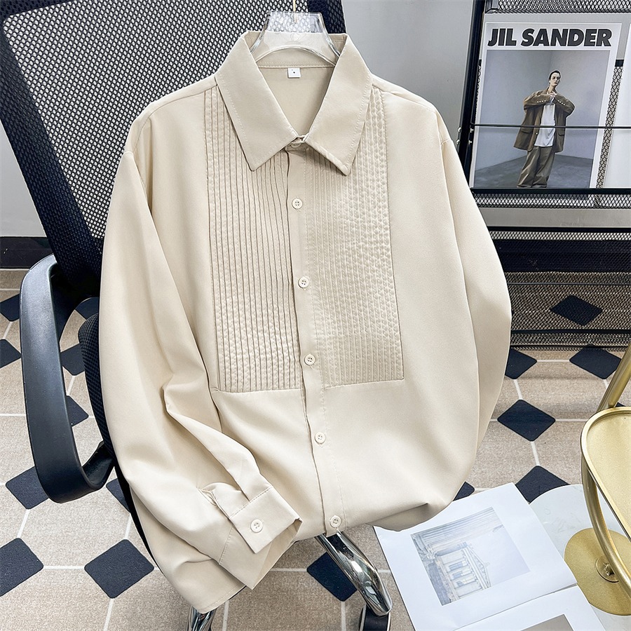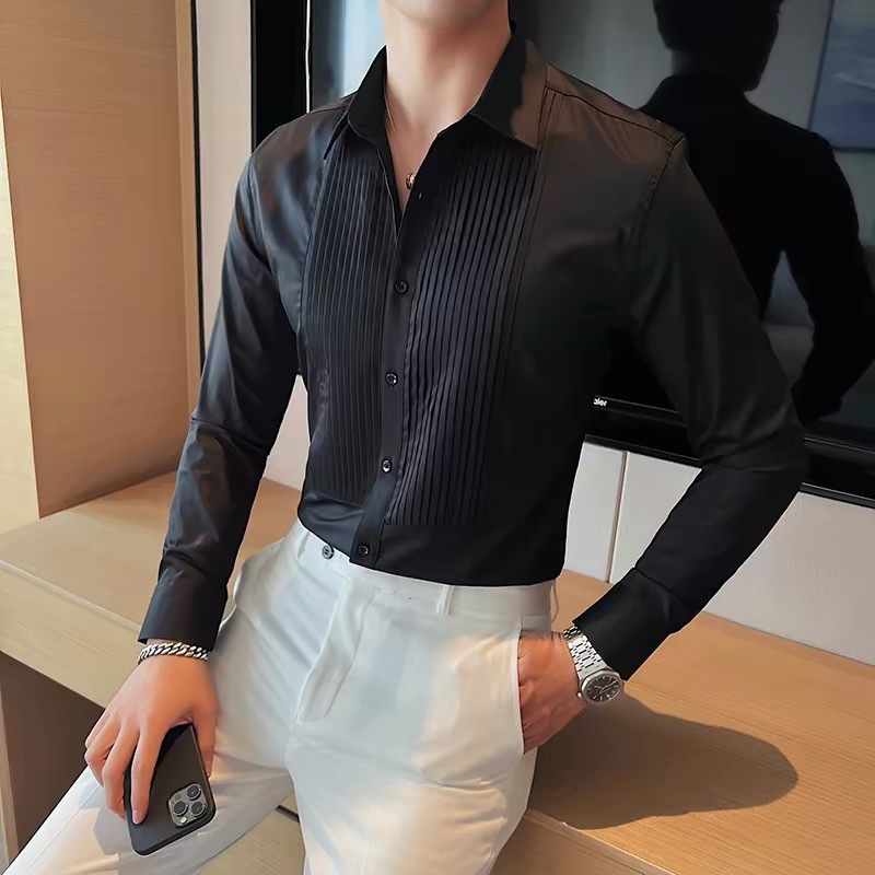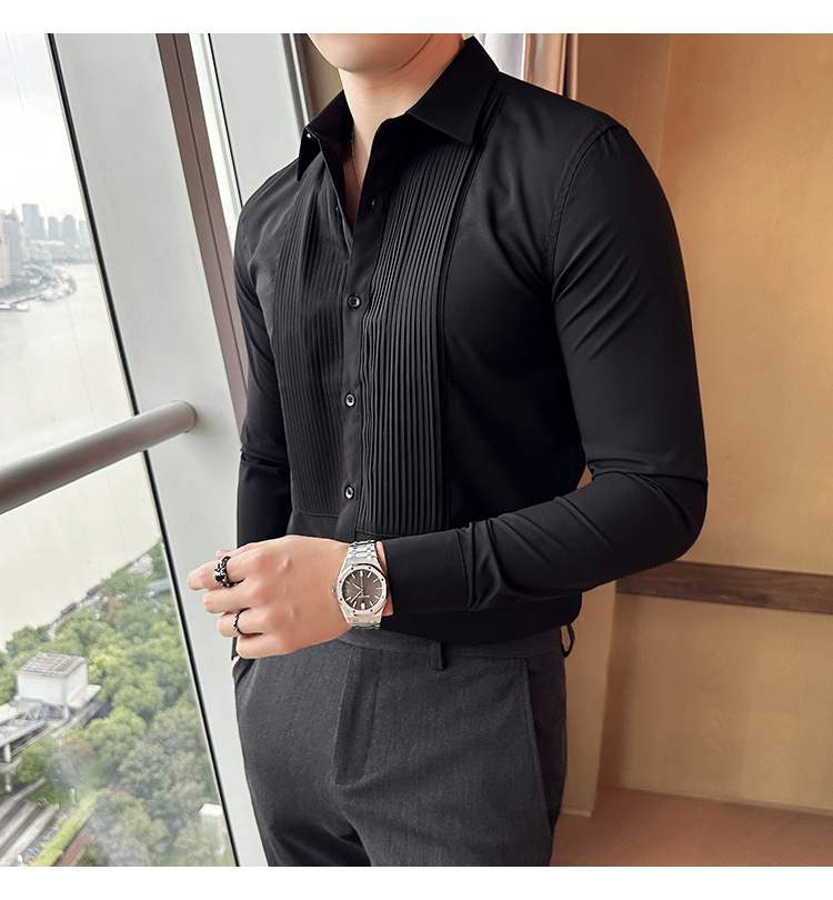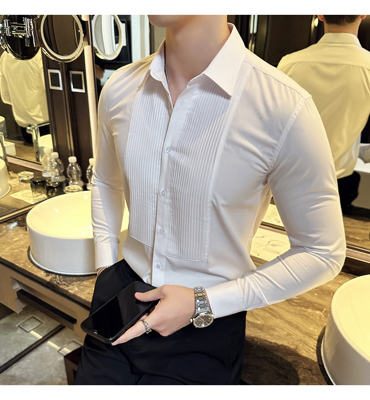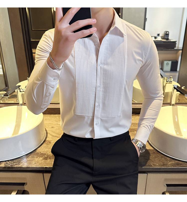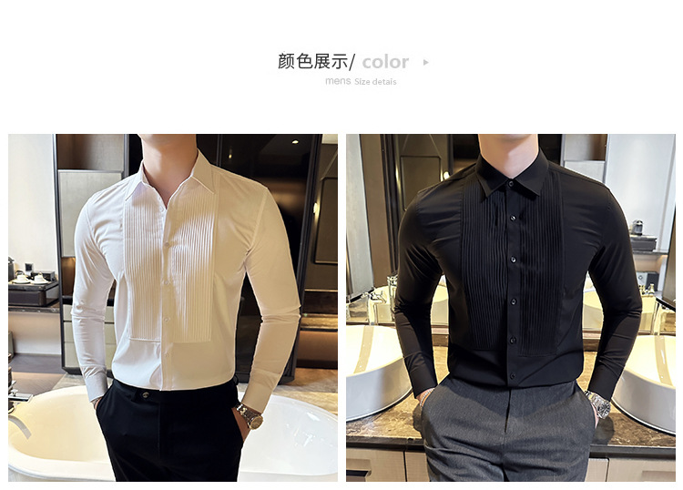 신랑 웨딩 긴 소매 셔츠 남성 패션 주름 원피스 셔츠 트렌디 슬림 적합 남성 웨딩 연회 공연 셔츠스토어 가기