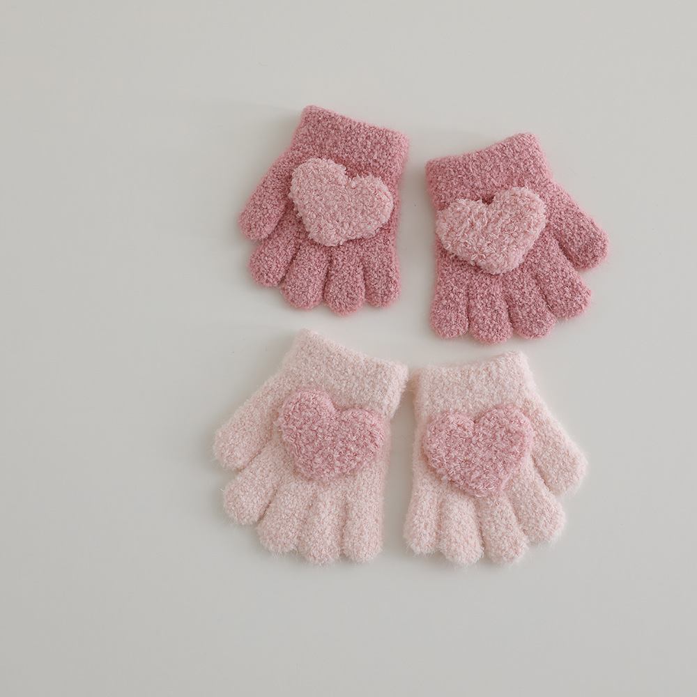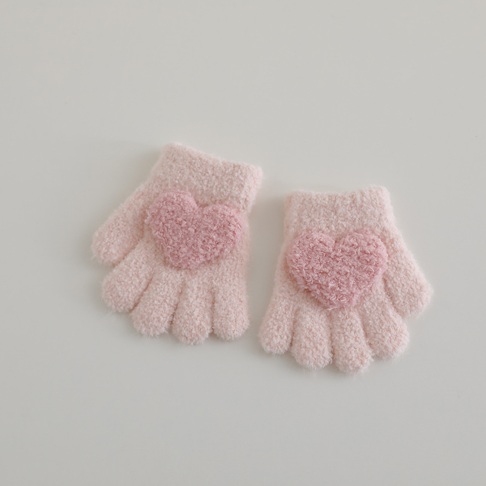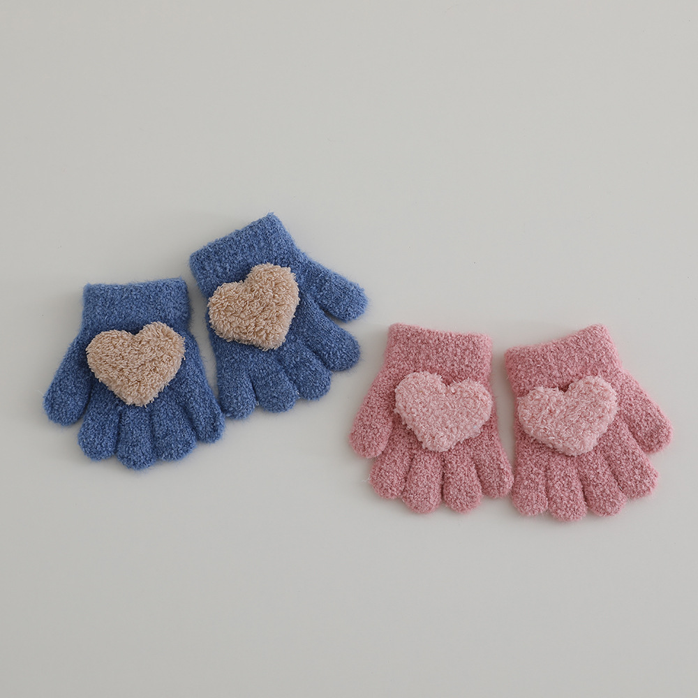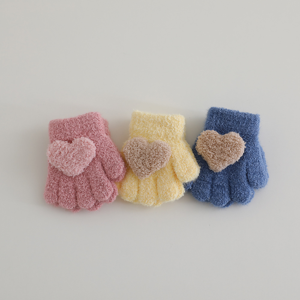 색상 일치 사랑 개인화 된 아기 장갑 겨울 봉제 따뜻한 부드러운 왁스 소녀 귀여운 손가락 공주 외국 스타일 장갑