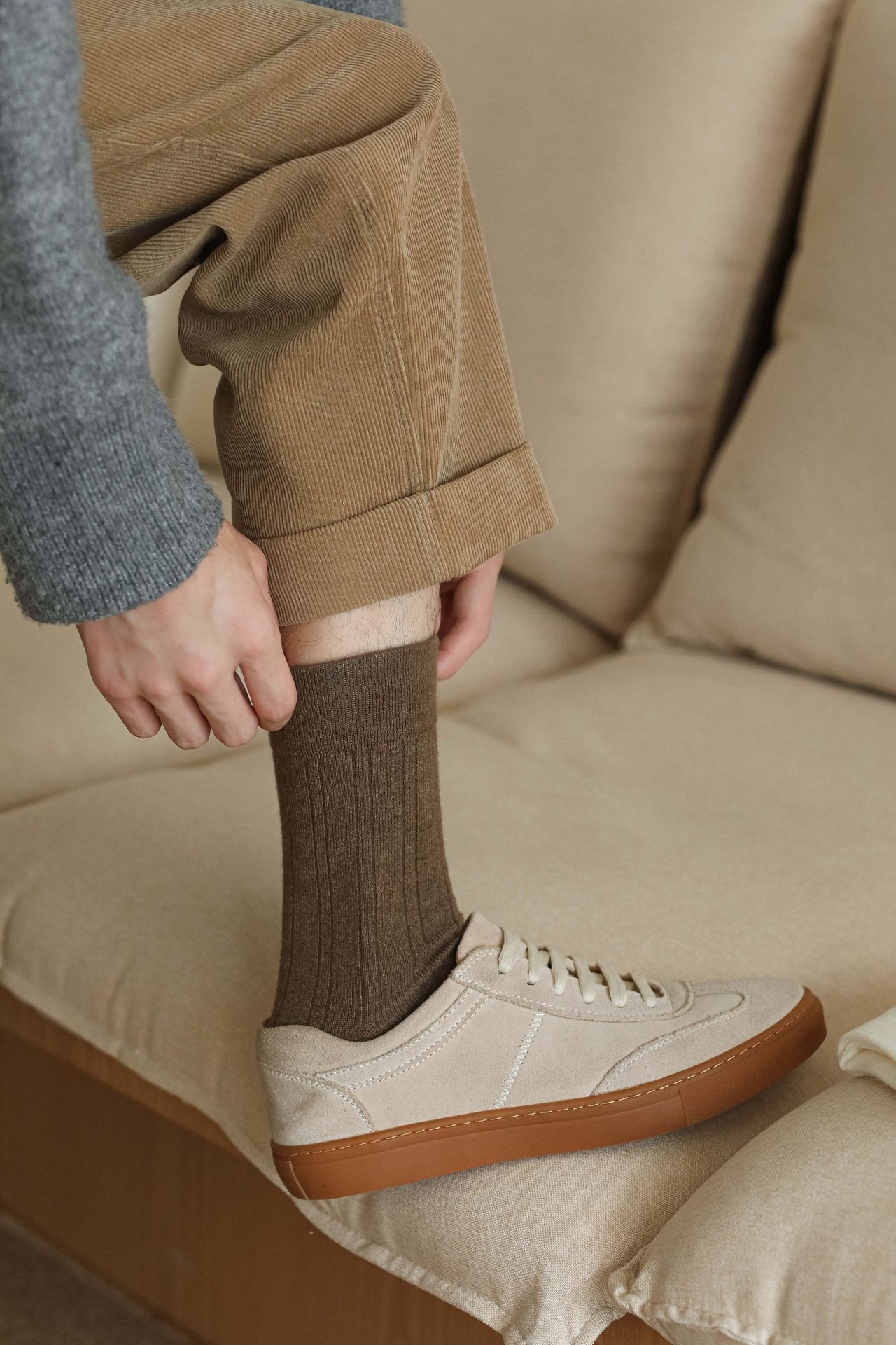 남자 캐시미어 더블 니들 솔리드 컬러 미드 파일 양말 가을과 겨울 한국 컬러 스핀 원사 캐시미어 핸드 일본식 스택 양말스토어 가기