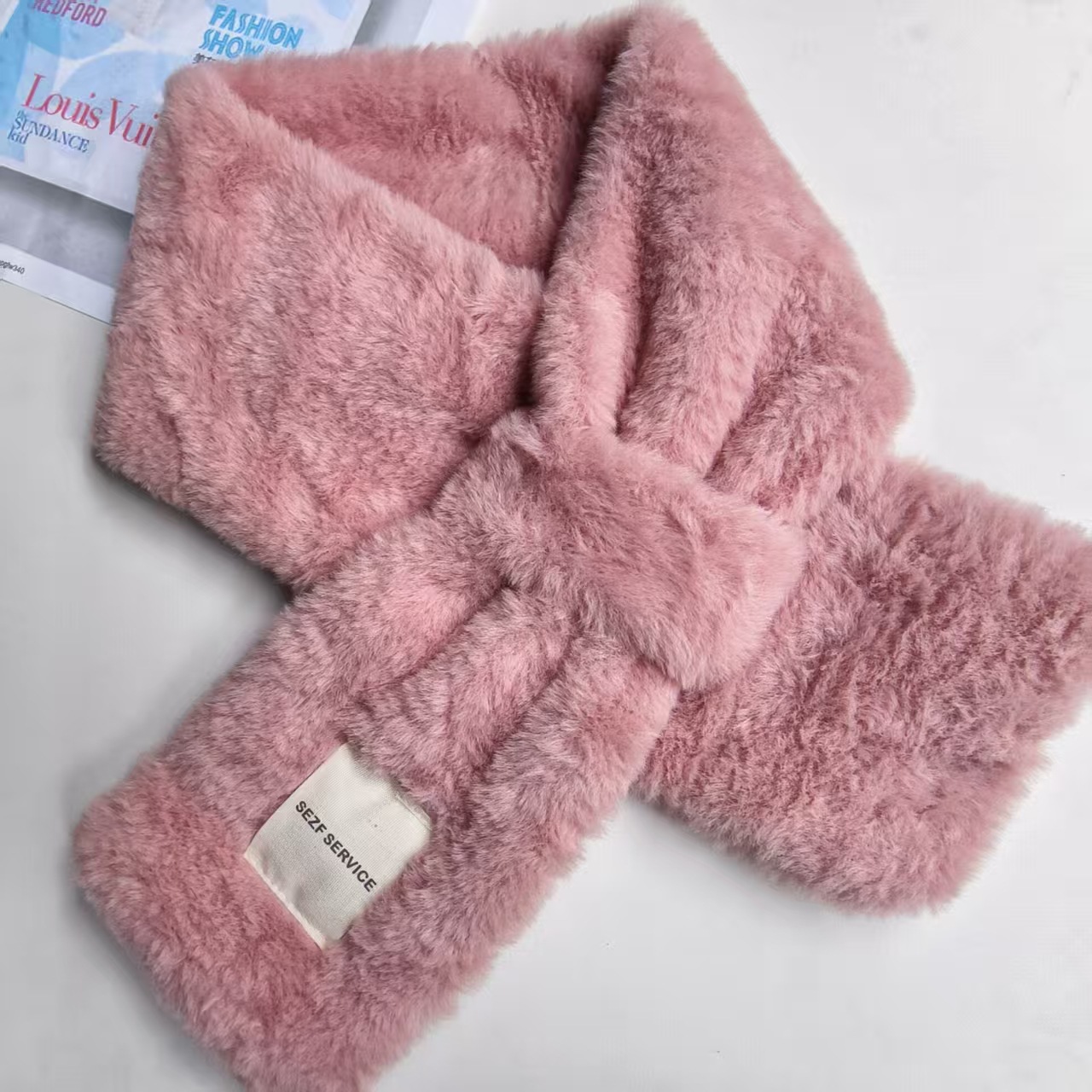 한국 패션 조커 단색 모조 토끼 모피 스카프 모조 모피 크로스 플러시 따뜻한 스카프스토어 가기