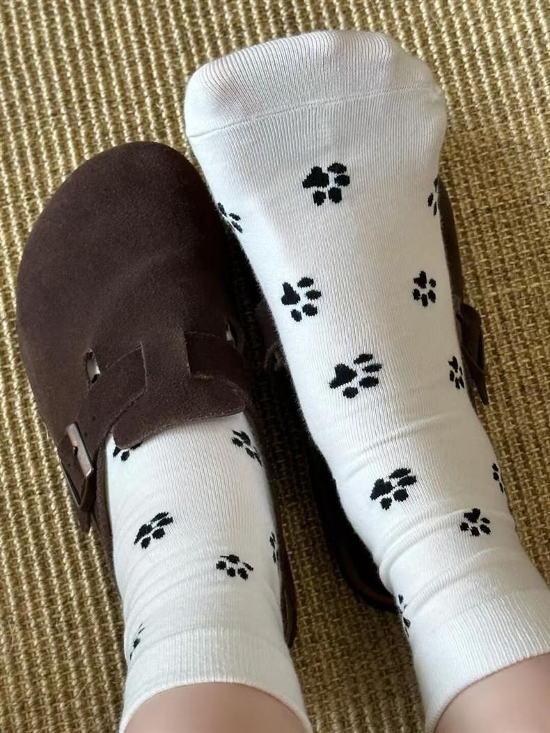 강아지 강아지 발 프린트 미드 튜브 양말 양말 여성 한국 인 패션 디자인에 봄과 가을 대학 스타일 귀여운 성격 트렌드스토어 가기