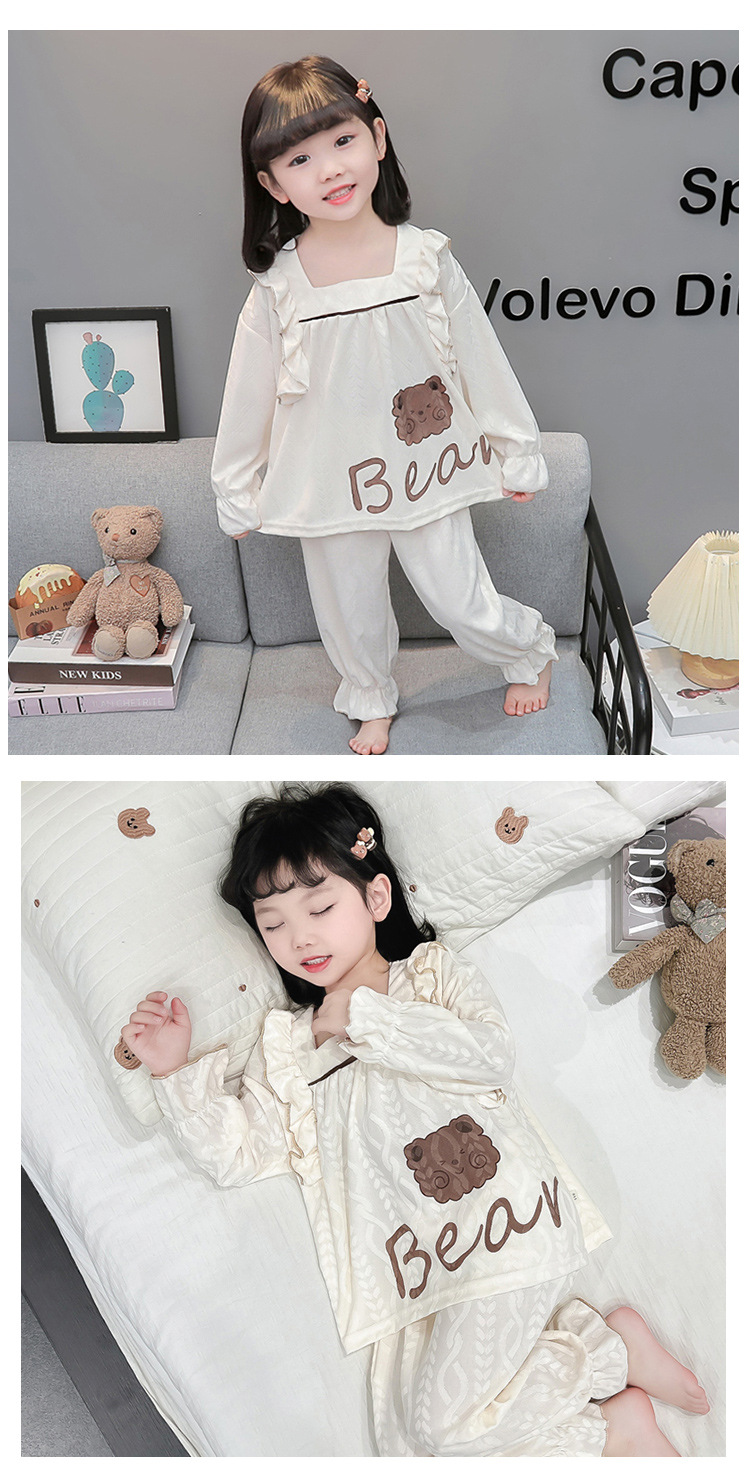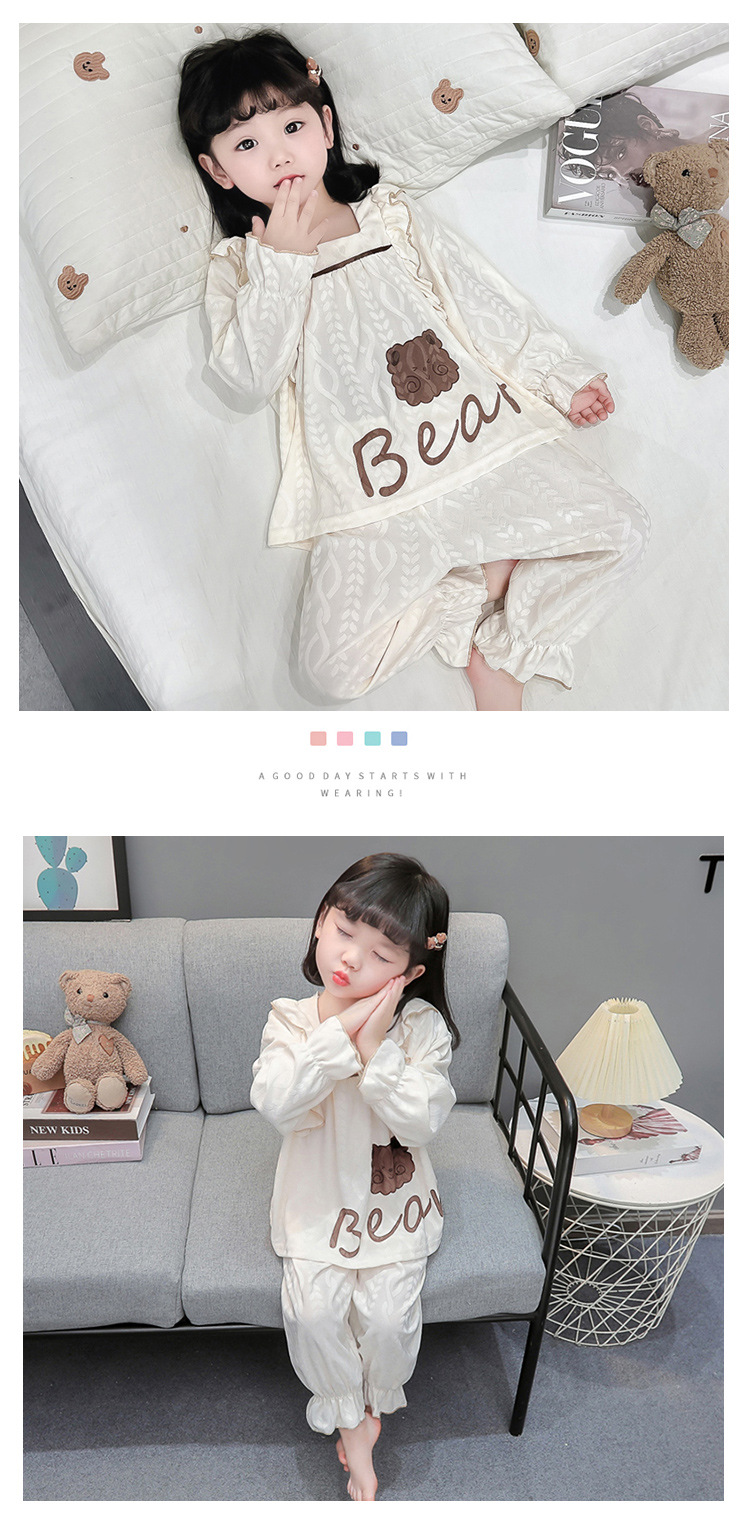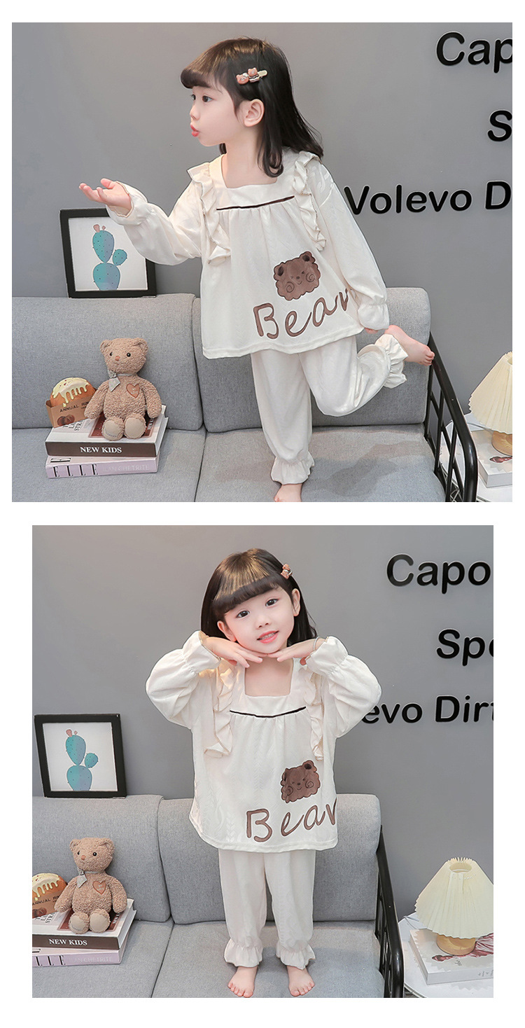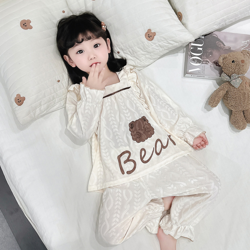 소녀 새로운 만화 잠옷 긴 소매 봄과 가을 면 어린이 공주 스타일 달콤한 레이스 아기 홈 의류 세트