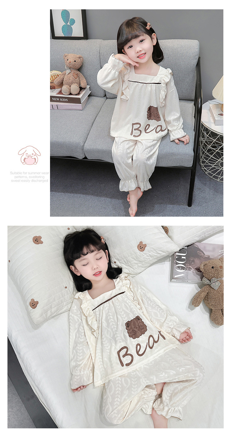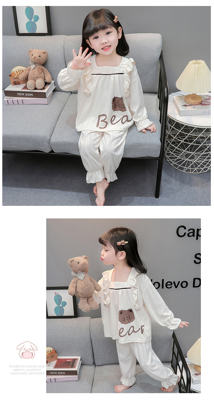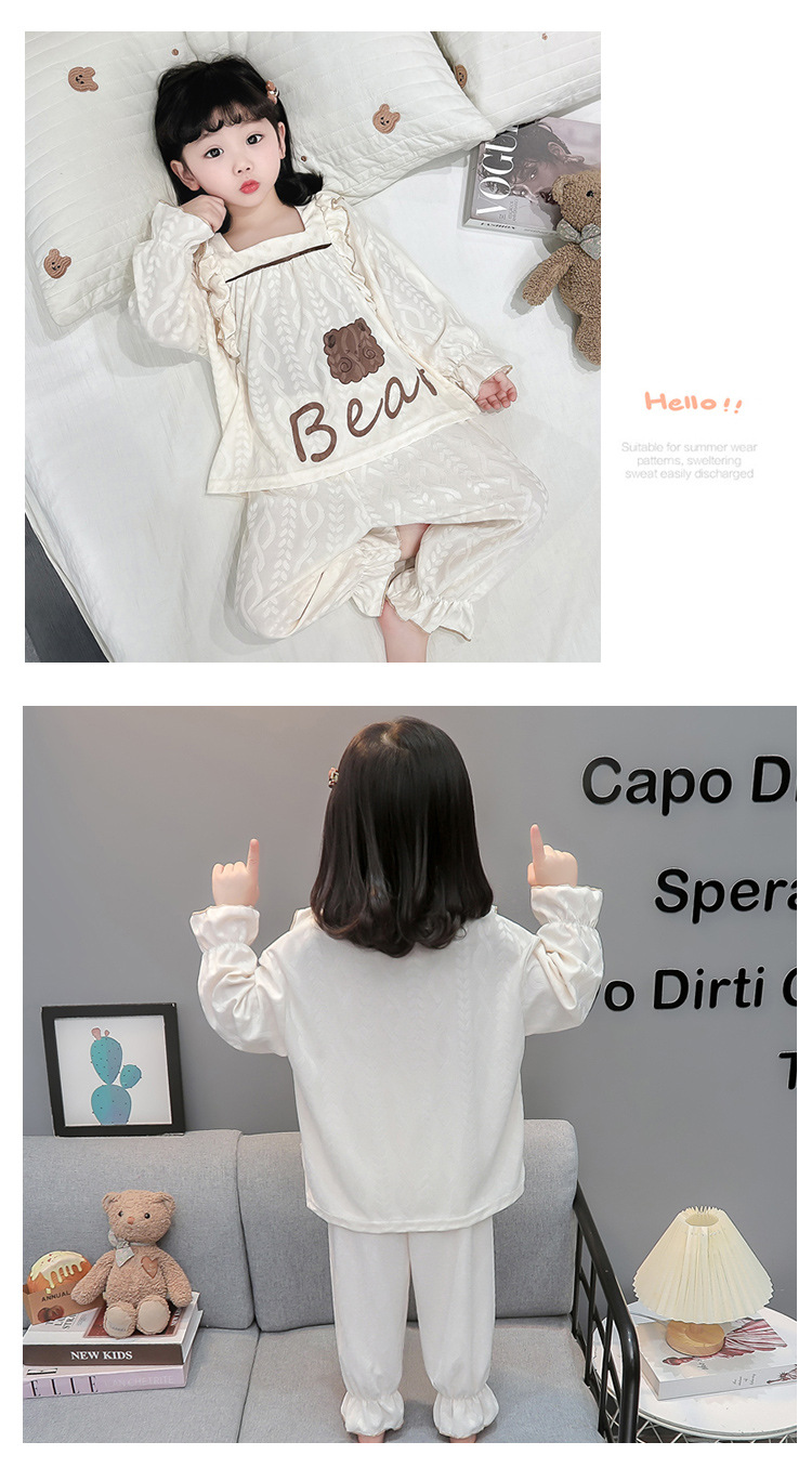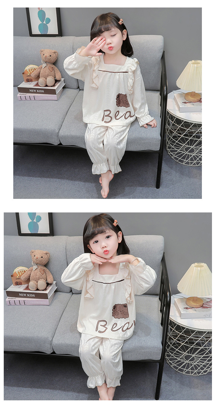소녀 새로운 만화 잠옷 긴 소매 봄과 가을 면 어린이 공주 스타일 달콤한 레이스 아기 홈 의류 세트