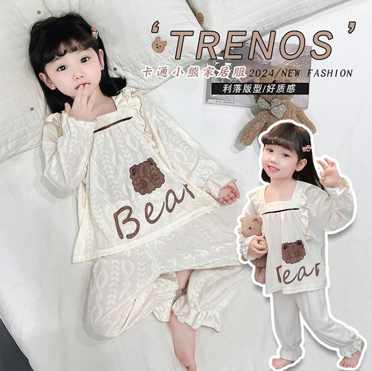 소녀 새로운 만화 잠옷 긴 소매 봄과 가을 면 어린이 공주 스타일 달콤한 레이스 아기 홈 의류 세트스토어 가기