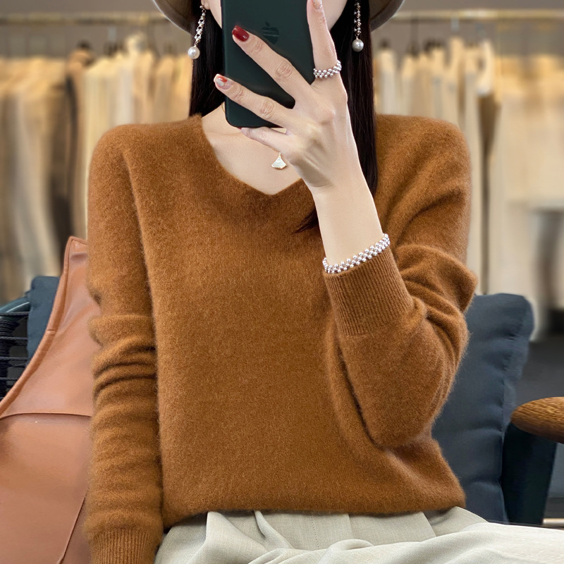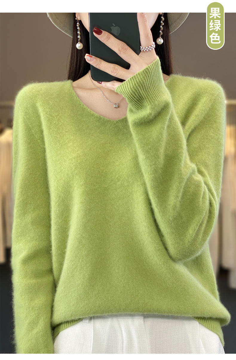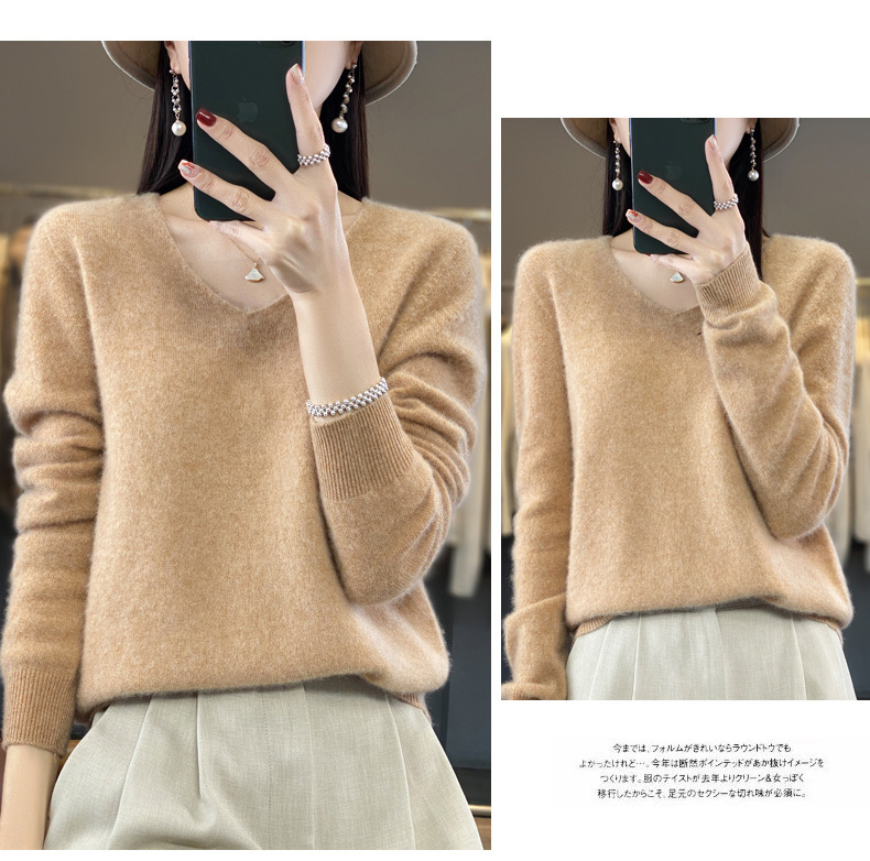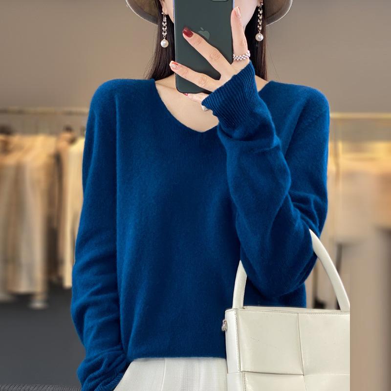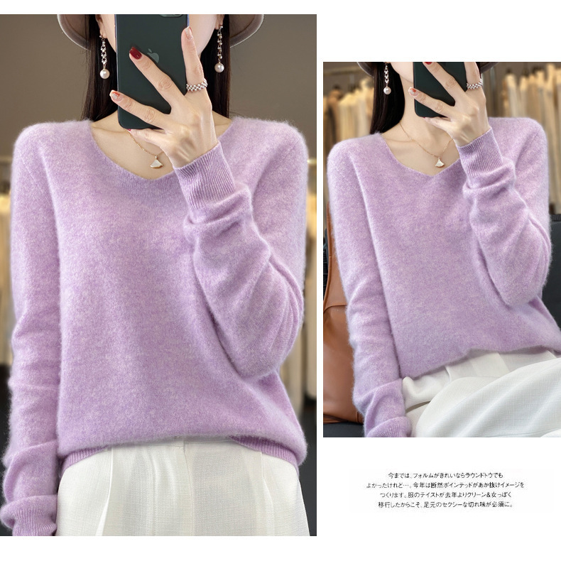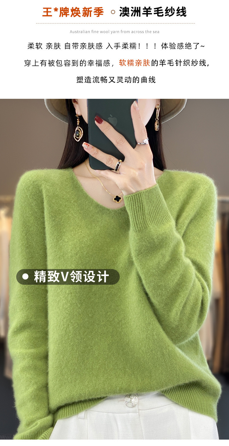 첫 번째 라인 의류 100 순수 양모 니트웨어 여성용 V 넥 풀오버 루즈베이스 셔츠 가을 및 겨울 새로운 솔리드 컬러 스웨터스토어 가기