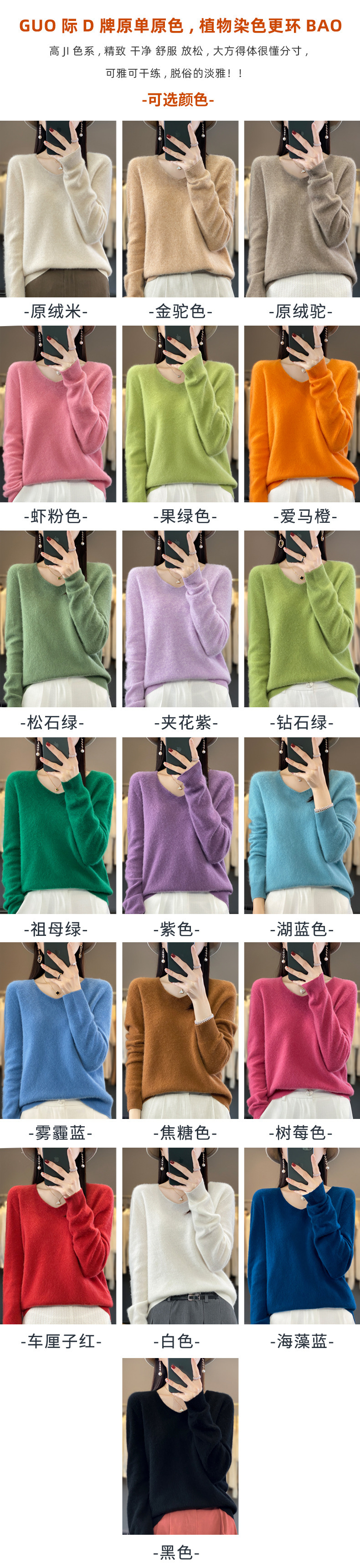 첫 번째 라인 의류 100 순수 양모 니트웨어 여성용 V 넥 풀오버 루즈베이스 셔츠 가을 및 겨울 새로운 솔리드 컬러 스웨터
