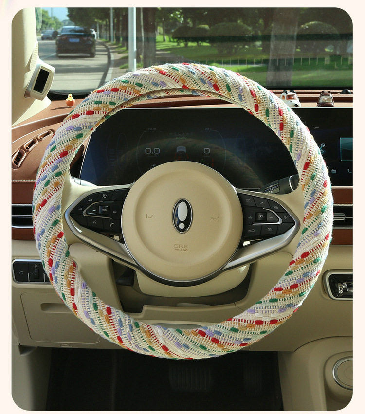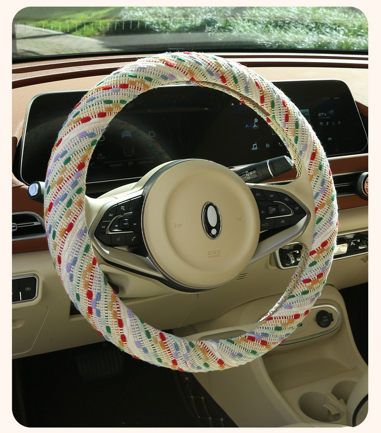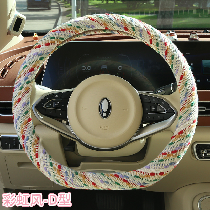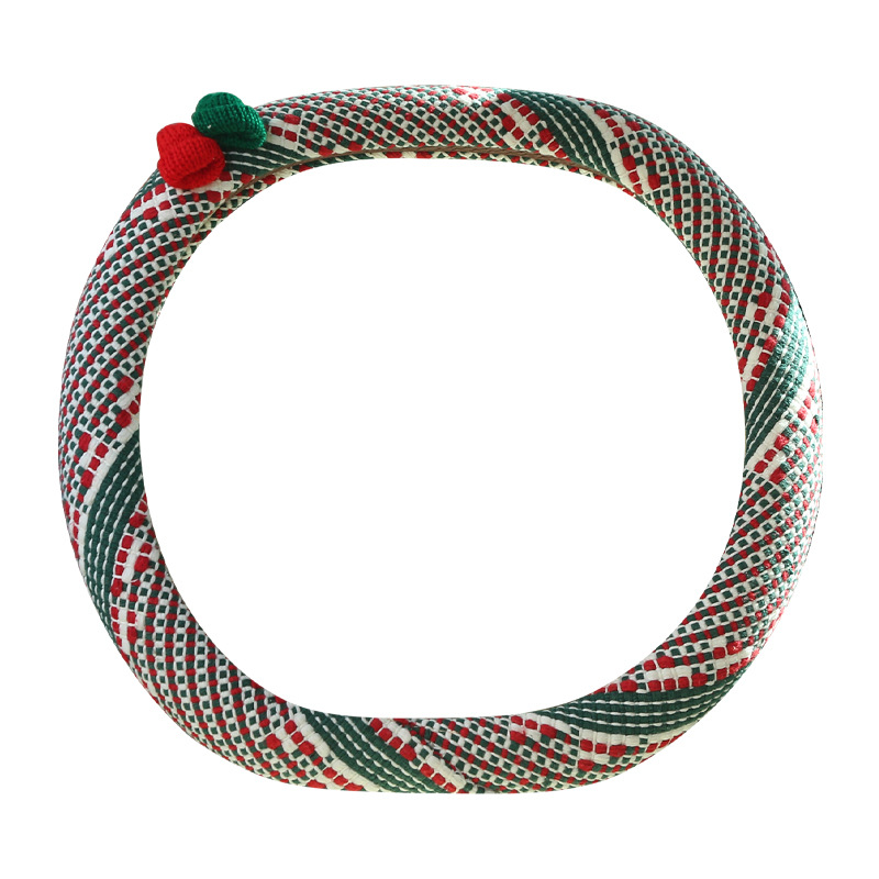 크리스마스 스타일 자동차 핸들 커버, 사계절 범용 면 및 린넨 여성용 자동차 실내 장식 보호 커버, 미끄럼 방지 겨울 핸들 커버