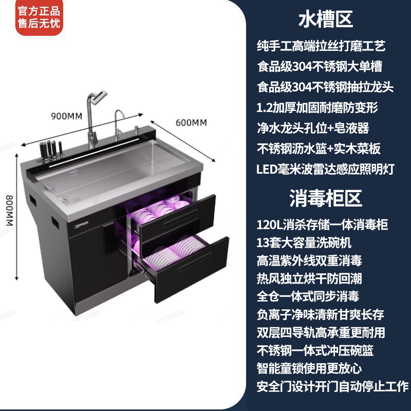 일체형 싱크대형 초음파 식기세척기 내장형 고온 건조 소독 캐비닛 고온 소독