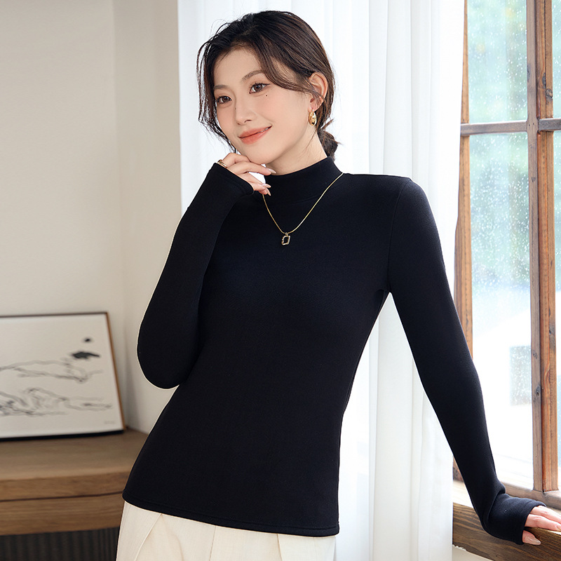 2025 가을 겨울 기모 두꺼운 골지 같은 색상의 하프 터틀넥 여성용 슬림핏 이너웨어/아우터웨어스토어 가기