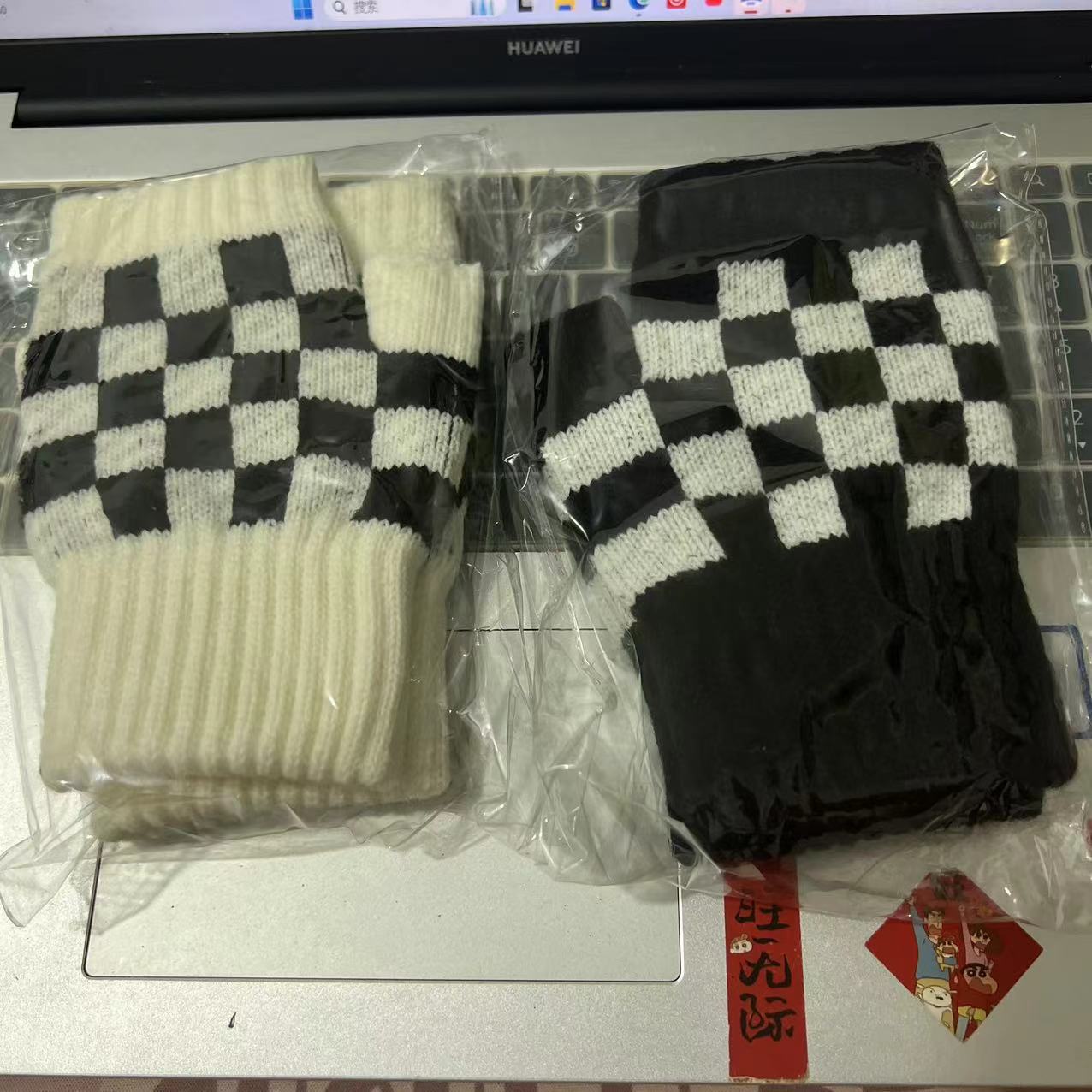 흑백 장갑 한국식 유행 겨울 타이핑 이슬 반 손가락 니트 체커 보드 학생 반손 양말 유행스토어 가기