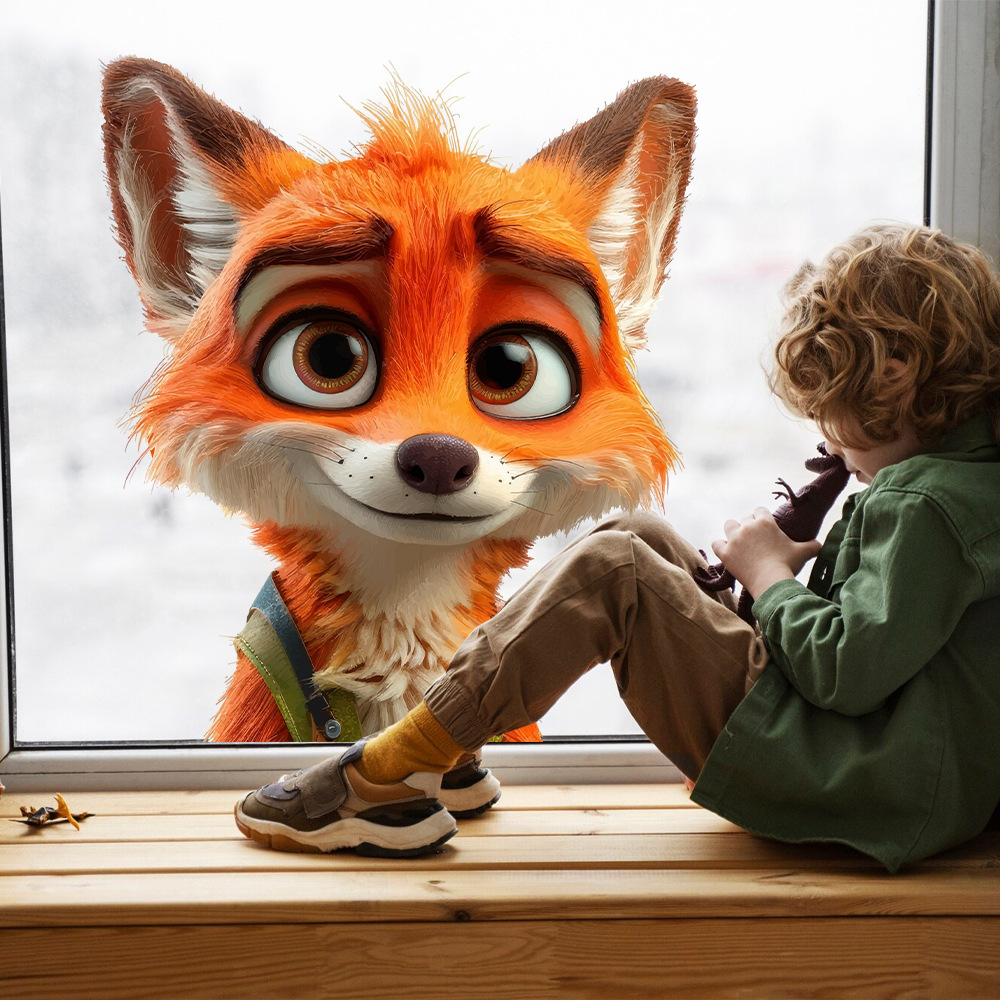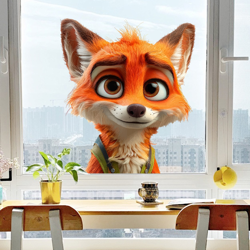 Yiyao JD3421 귀여운 여우 장식 유리 스티커 쇼핑몰 유리문과 접착제 정전기 스티커가없는 창문 전용 국경스토어 가기