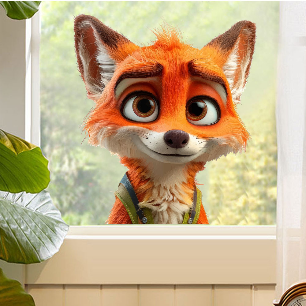 Yiyao JD3421 귀여운 여우 장식 유리 스티커 쇼핑몰 유리문과 접착제 정전기 스티커가없는 창문 전용 국경