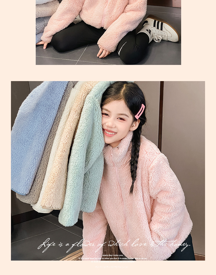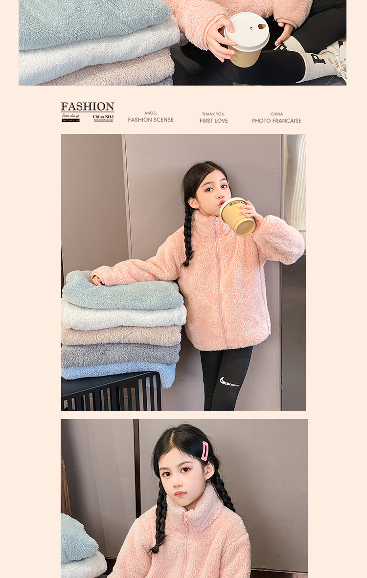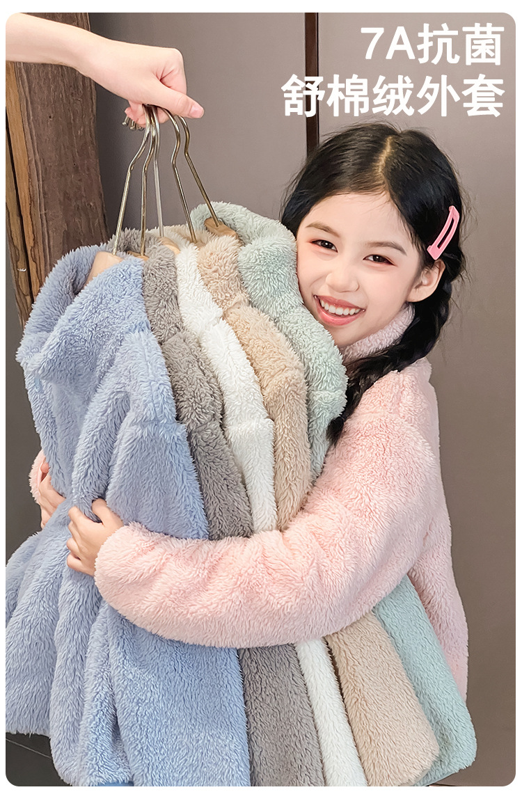 어린이 코트 산호 양털 소년과 소녀 봉제 양털 양면 양털 아기의 가을과 겨울 기모 탑스토어 가기
