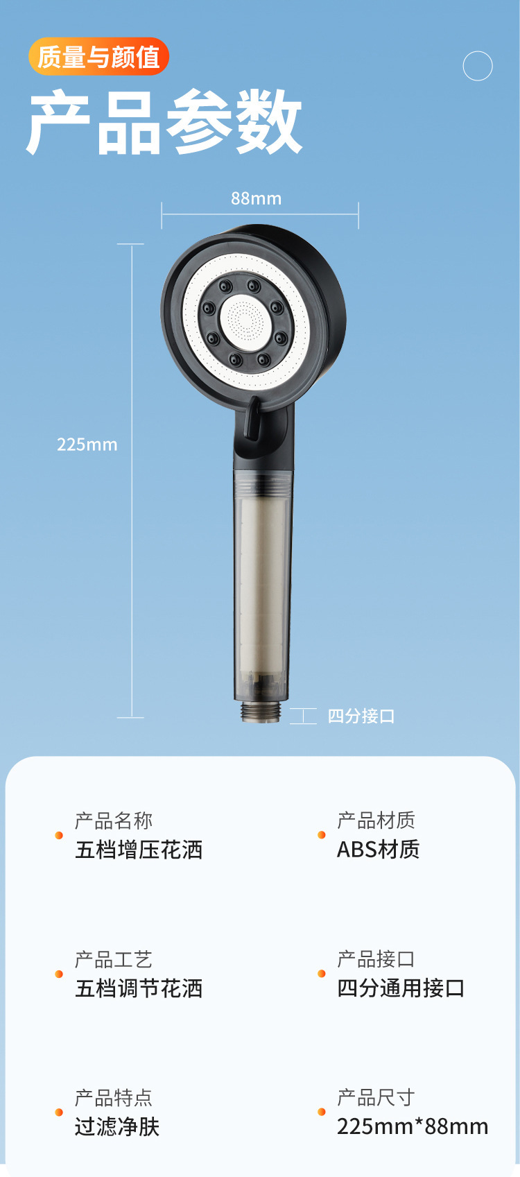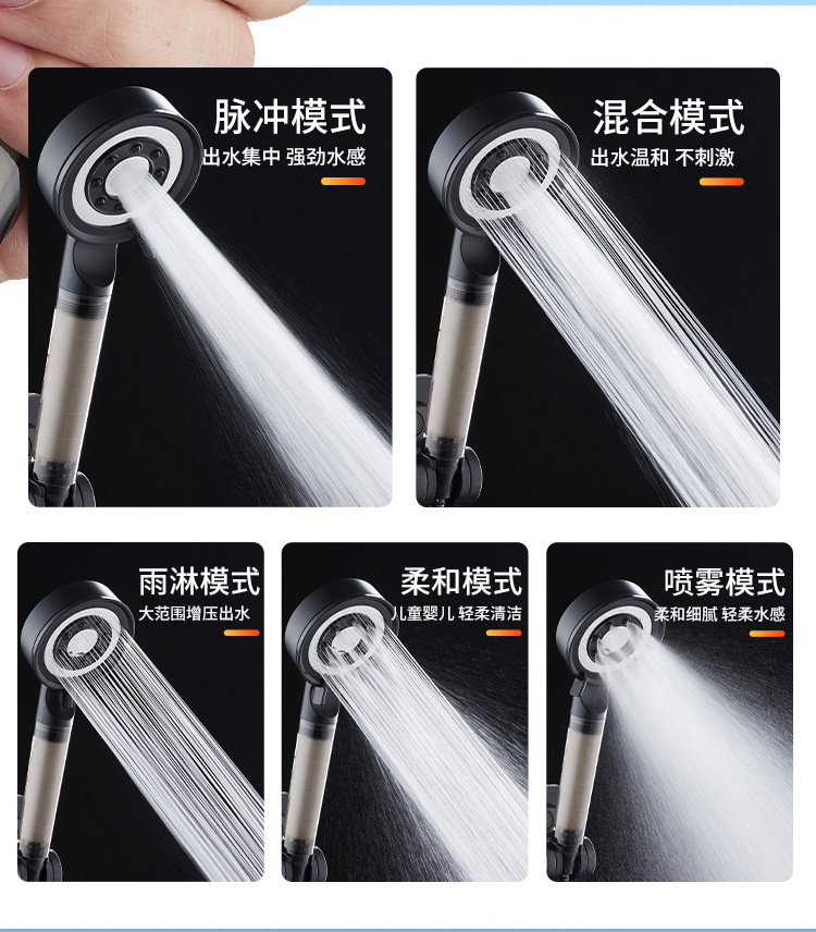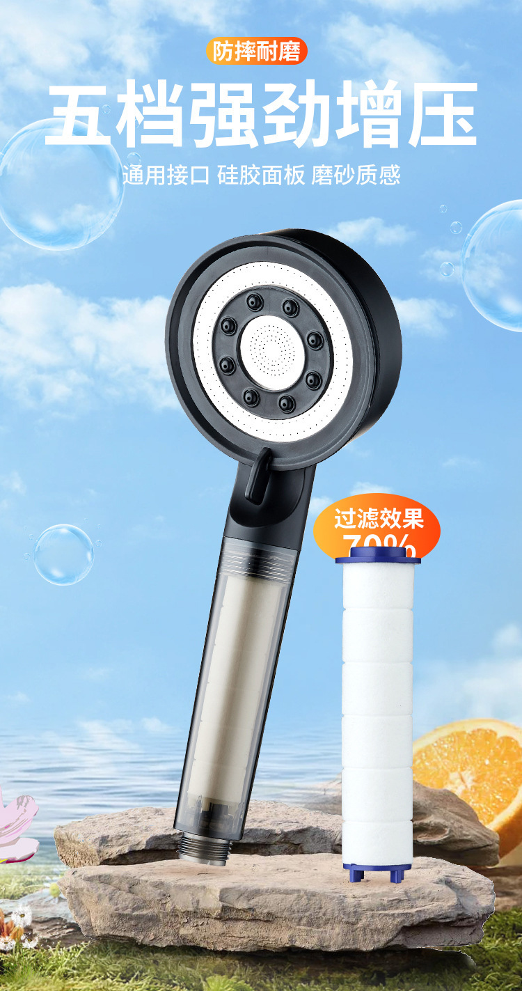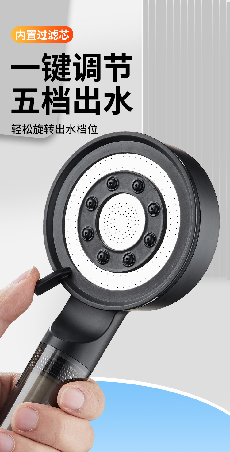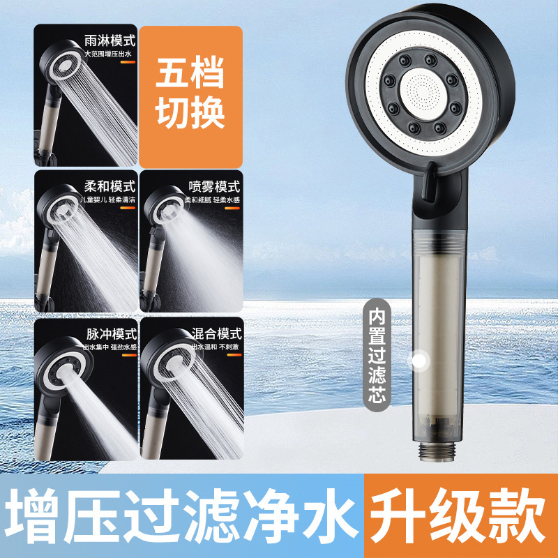 • 5단 스프레이 필터 블랙 샤워 헤드