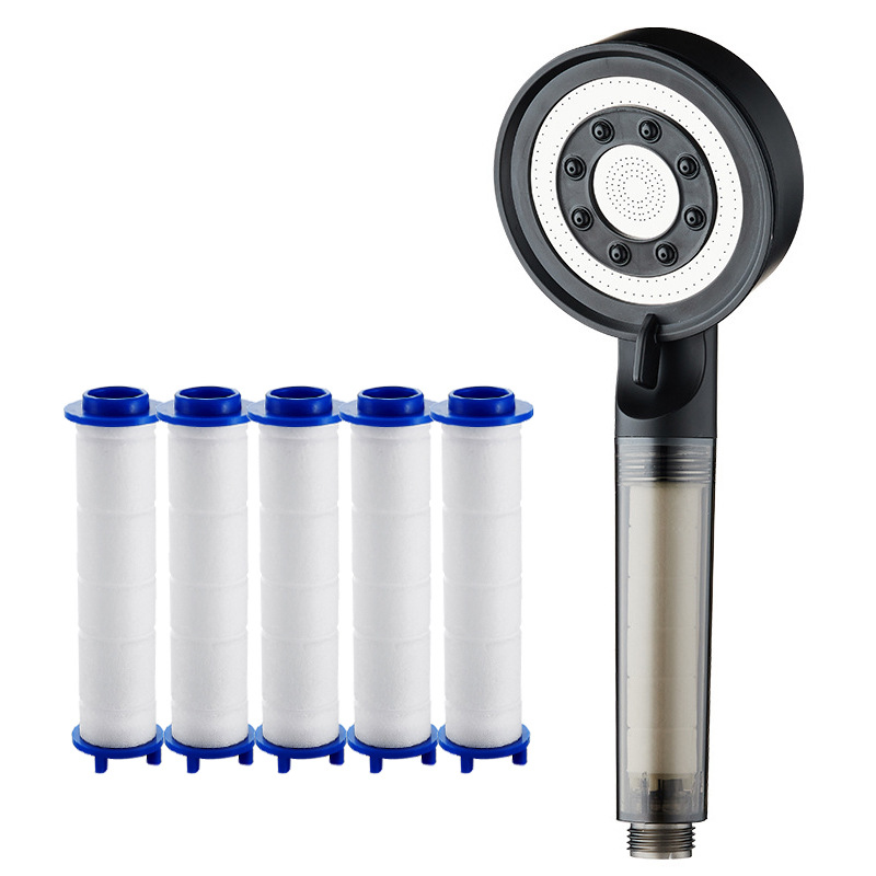 • 5단 스프레이 필터 블랙 샤워 헤드 + 무료 코어 5개