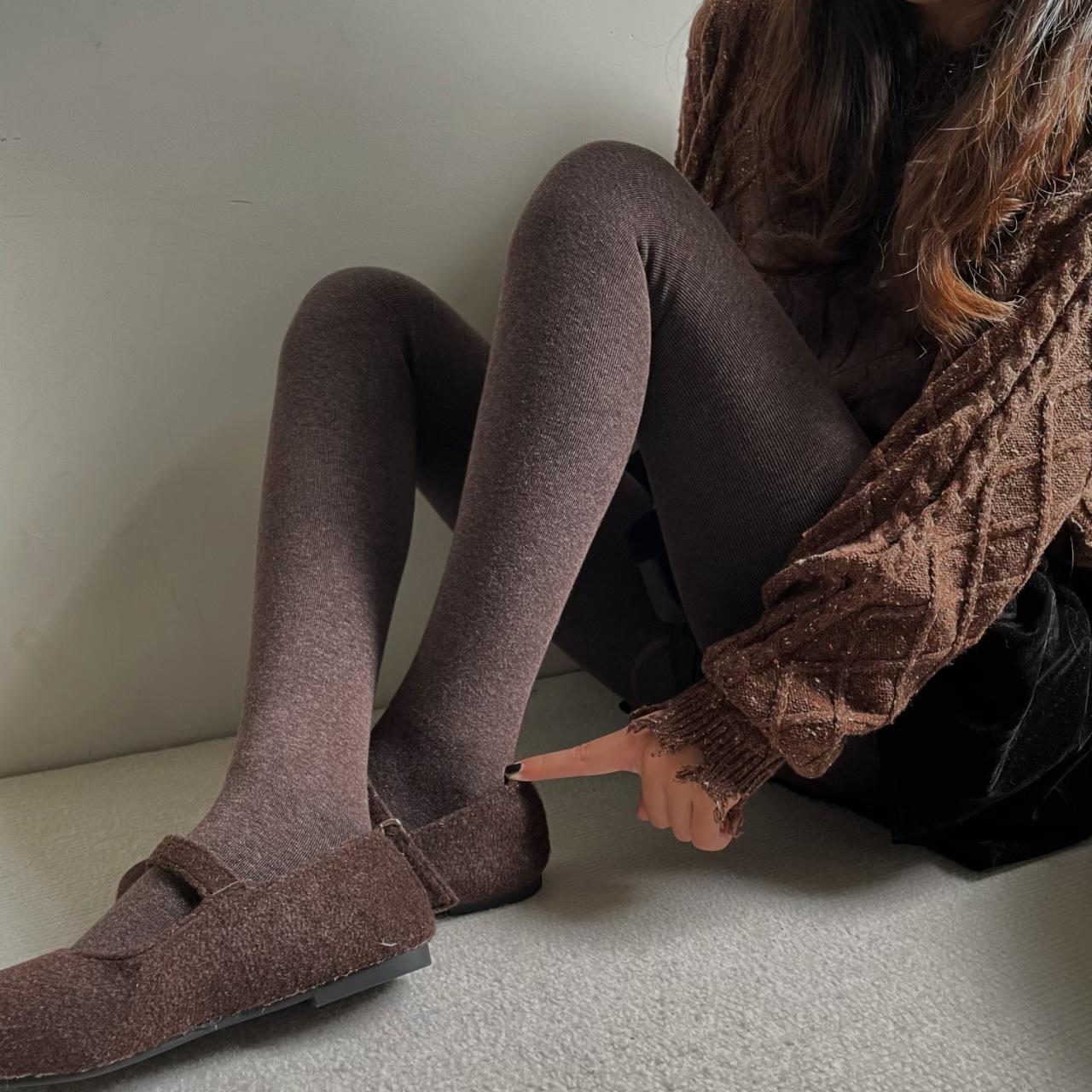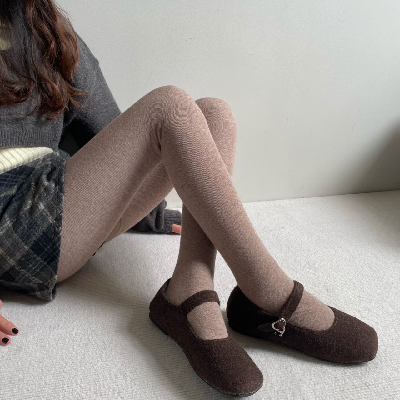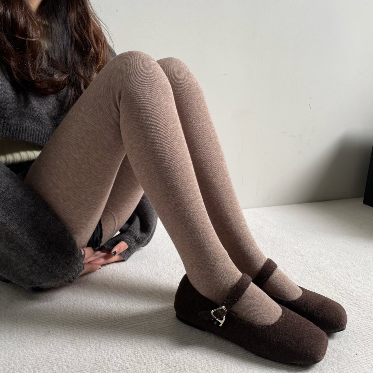 가을과 겨울 Maillard 다크 브라운 레깅스 기모 두꺼운 아이보리 팬티 스타킹 따뜻한 수직 곡물 회색 레깅스