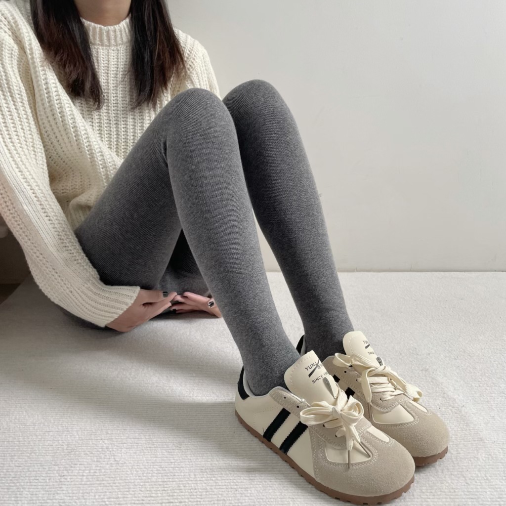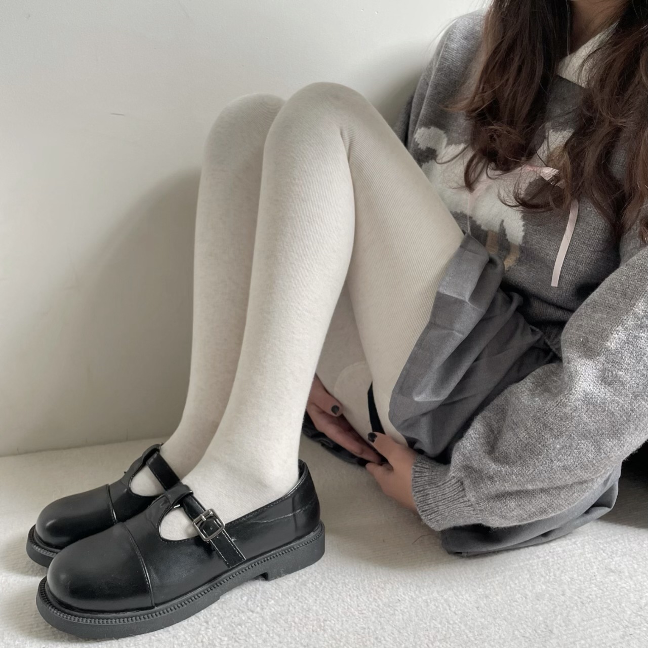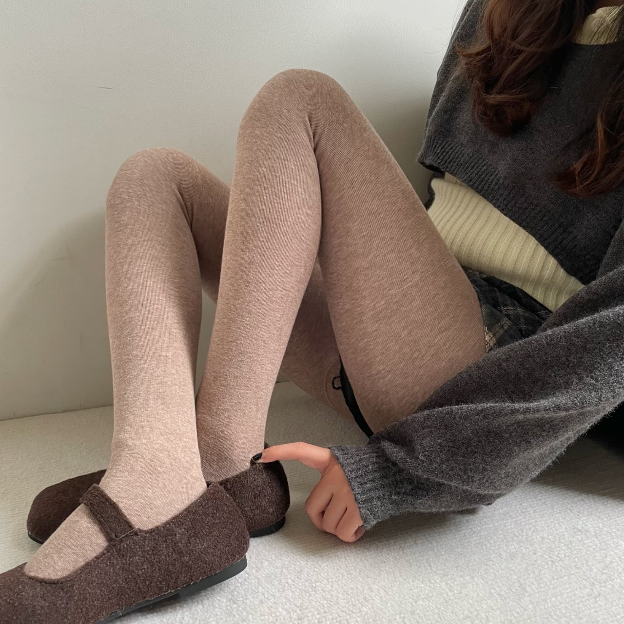 가을과 겨울 Maillard 다크 브라운 레깅스 기모 두꺼운 아이보리 팬티 스타킹 따뜻한 수직 곡물 회색 레깅스