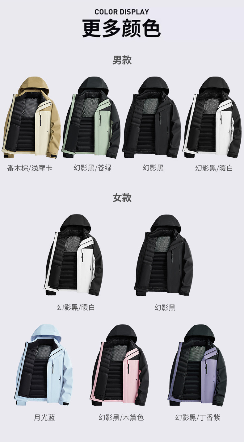 [신규 국가 표준] 남성용 다운 재킷 투피스 세트 탈부착 가능 겨울 야외 등산복 여성 맞춤 제작스토어 가기