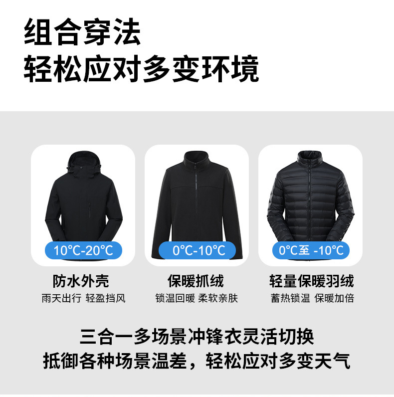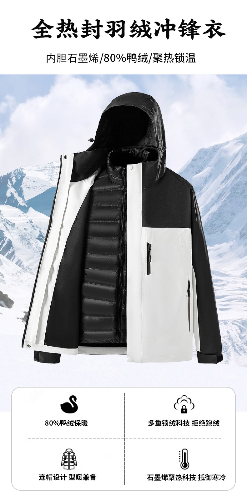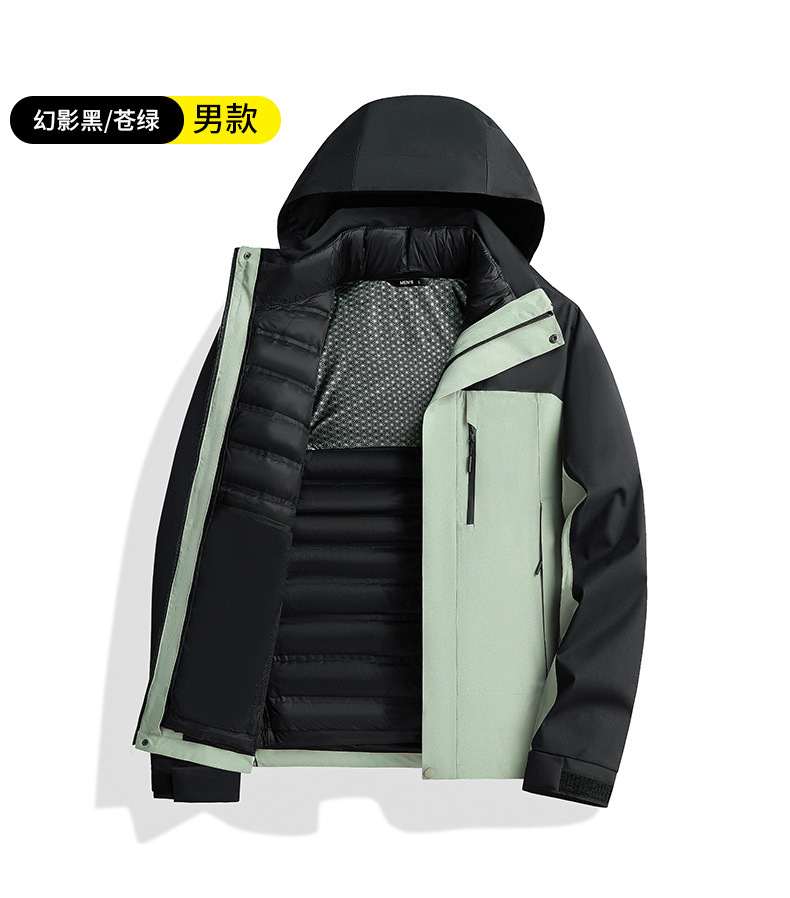 [신규 국가 표준] 남성용 다운 재킷 투피스 세트 탈부착 가능 겨울 야외 등산복 여성 맞춤 제작