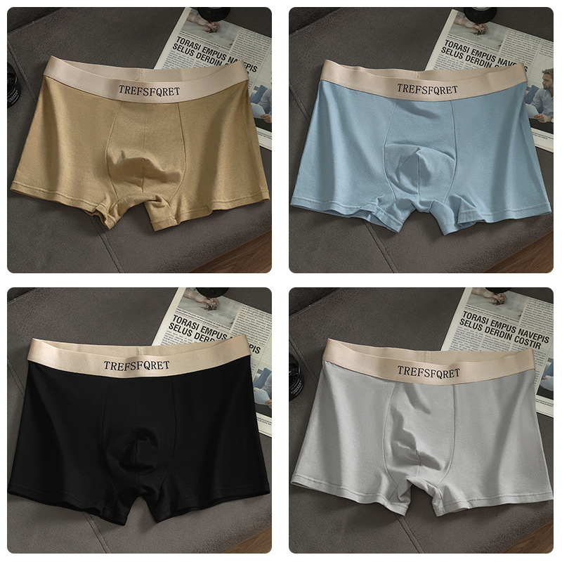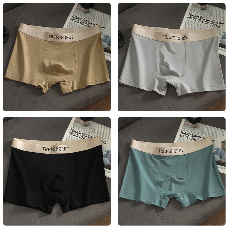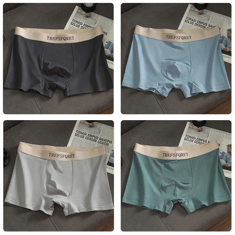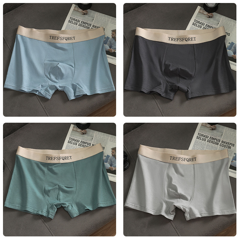 4 쌍 남성 속옷 남성 청소년 순수 코튼 모다이 통기성 중간 허리 유행 권투 선수 반바지 바지
