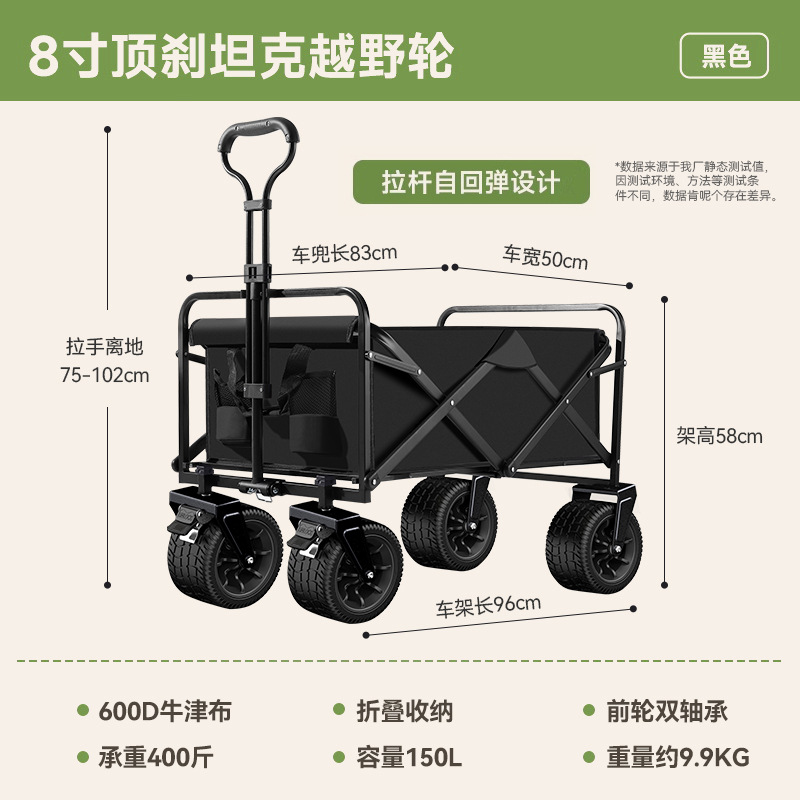• (플래그십 블랙) 8inch 브레이크가 장착된 탱크 휠 + 대형 프레임