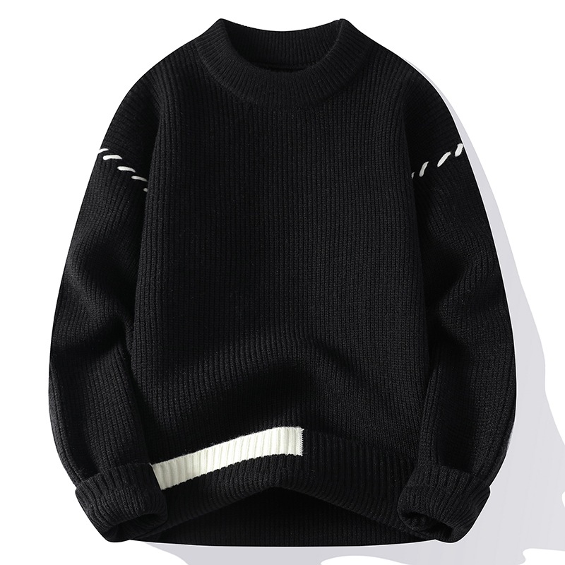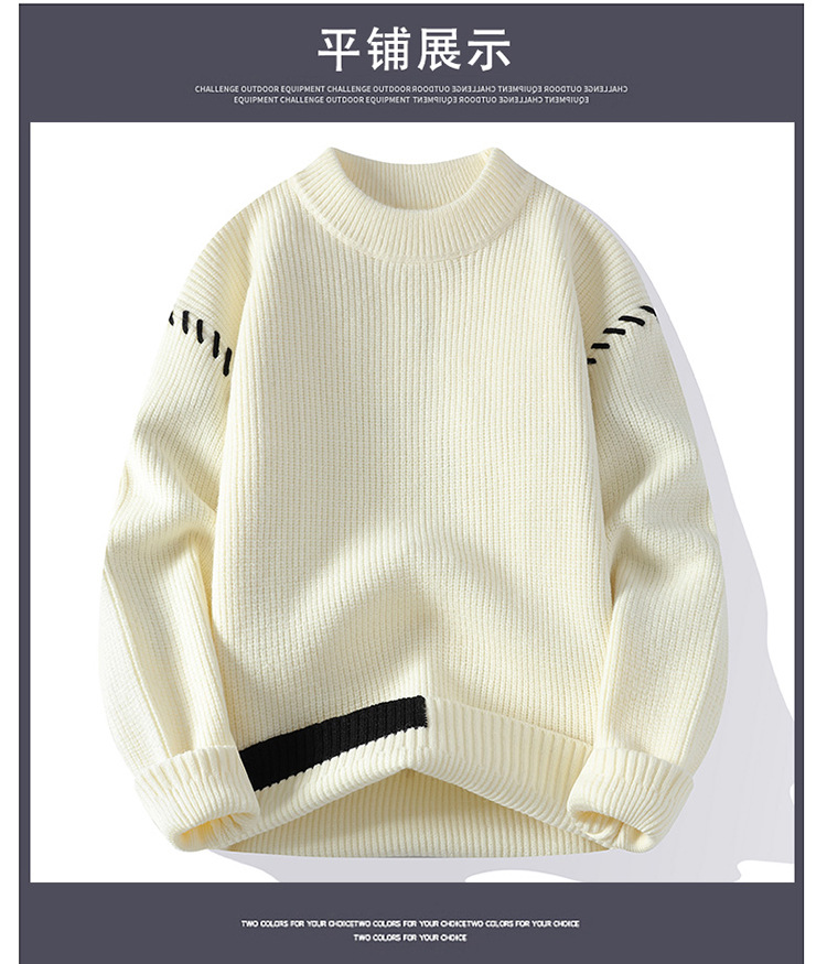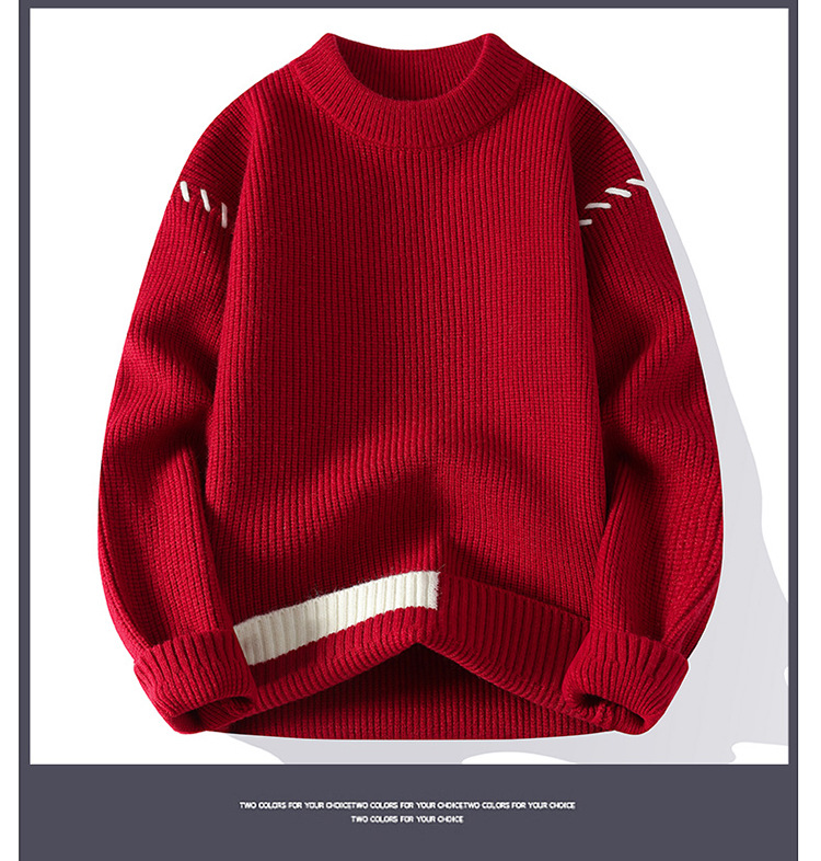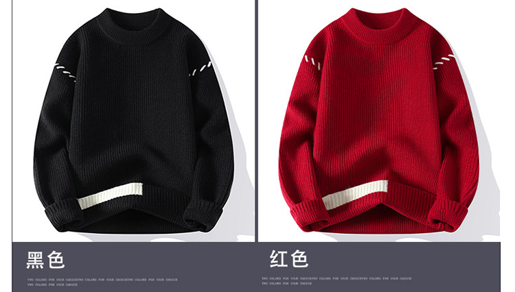 크루 넥 스웨터 남자 가을 겨울 새로운 두꺼운 따뜻한 풀오버 느슨한 한국 스타일 컬러 블록베이스 니트 스웨터