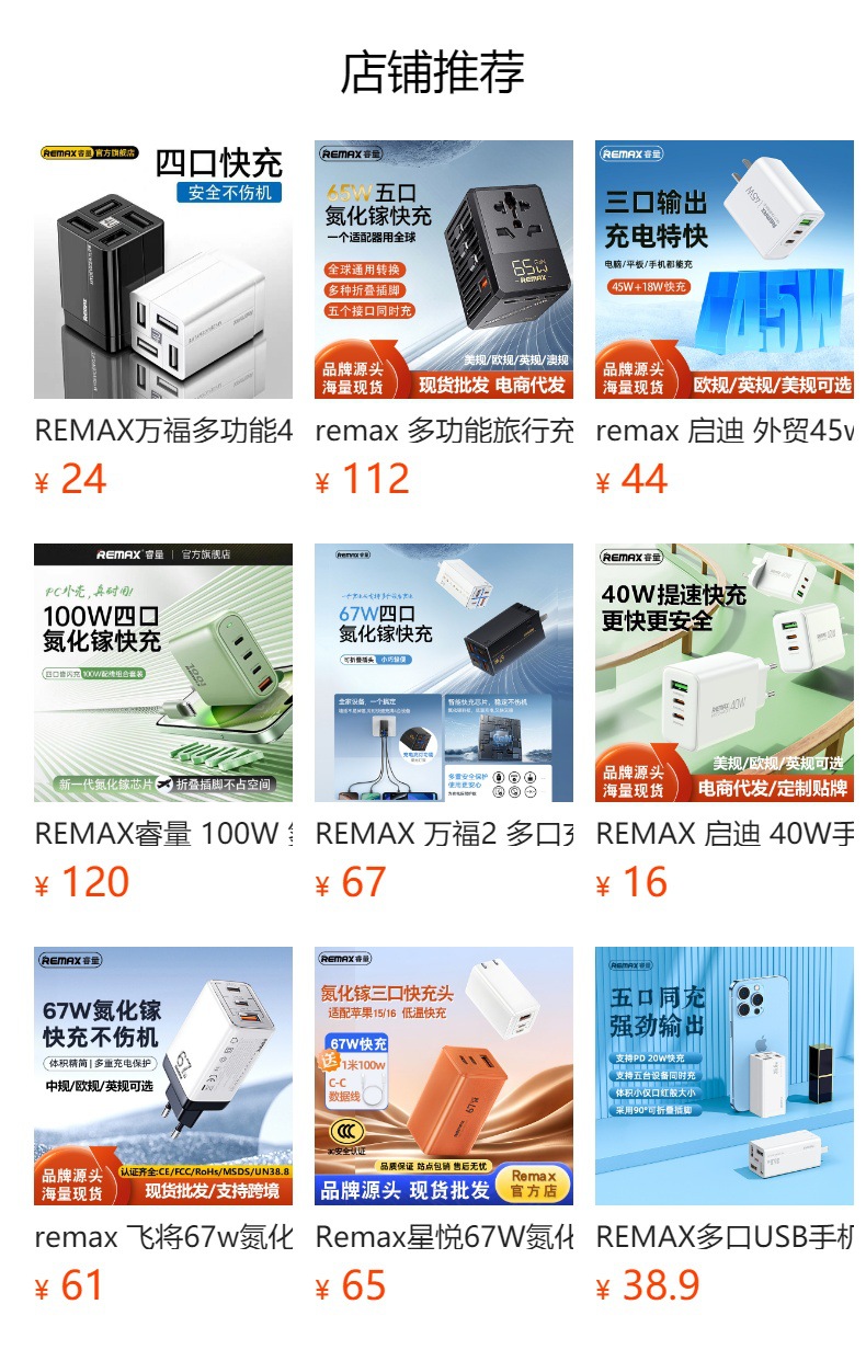 Remax Dongfeng 시리즈 데스크탑 65W 빠른 충전 헤드 멀티 인터페이스 Type-C 휴대 전화 충전기 빠른 충전 헤드스토어 가기