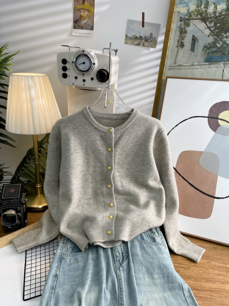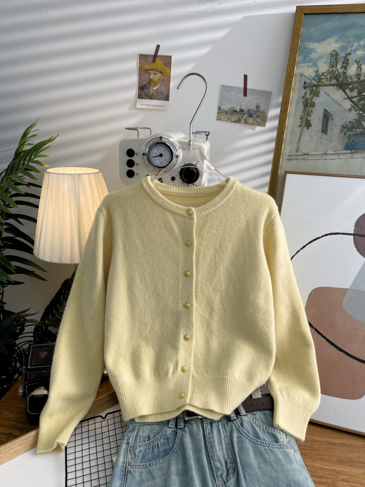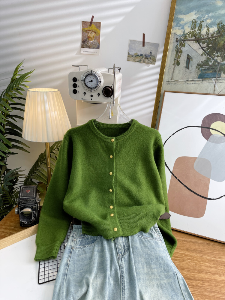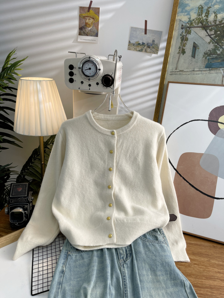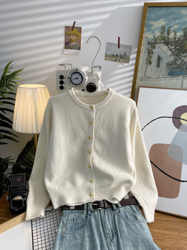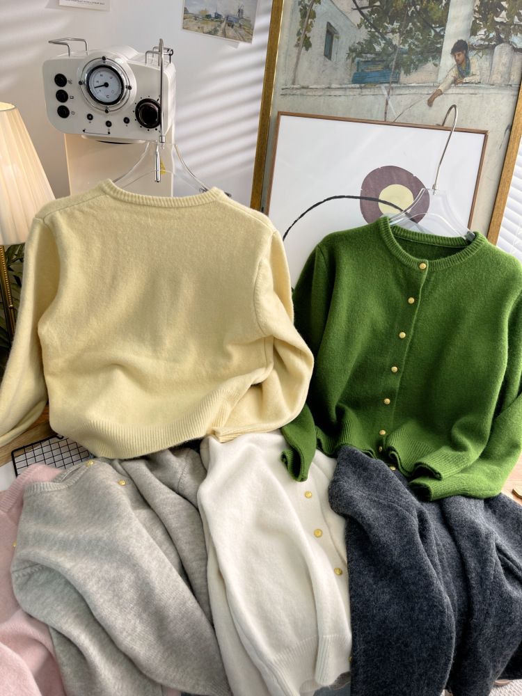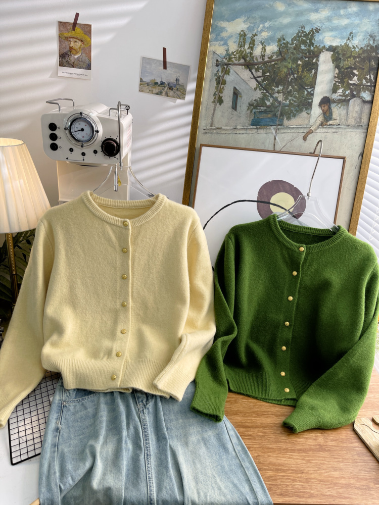 Le Fear [Milk fufu] 부드러운 니트 카디건 게으른 스웨터 여성의 가을 겨울 쇼트 코트 소프트 왁스 레트로스토어 가기