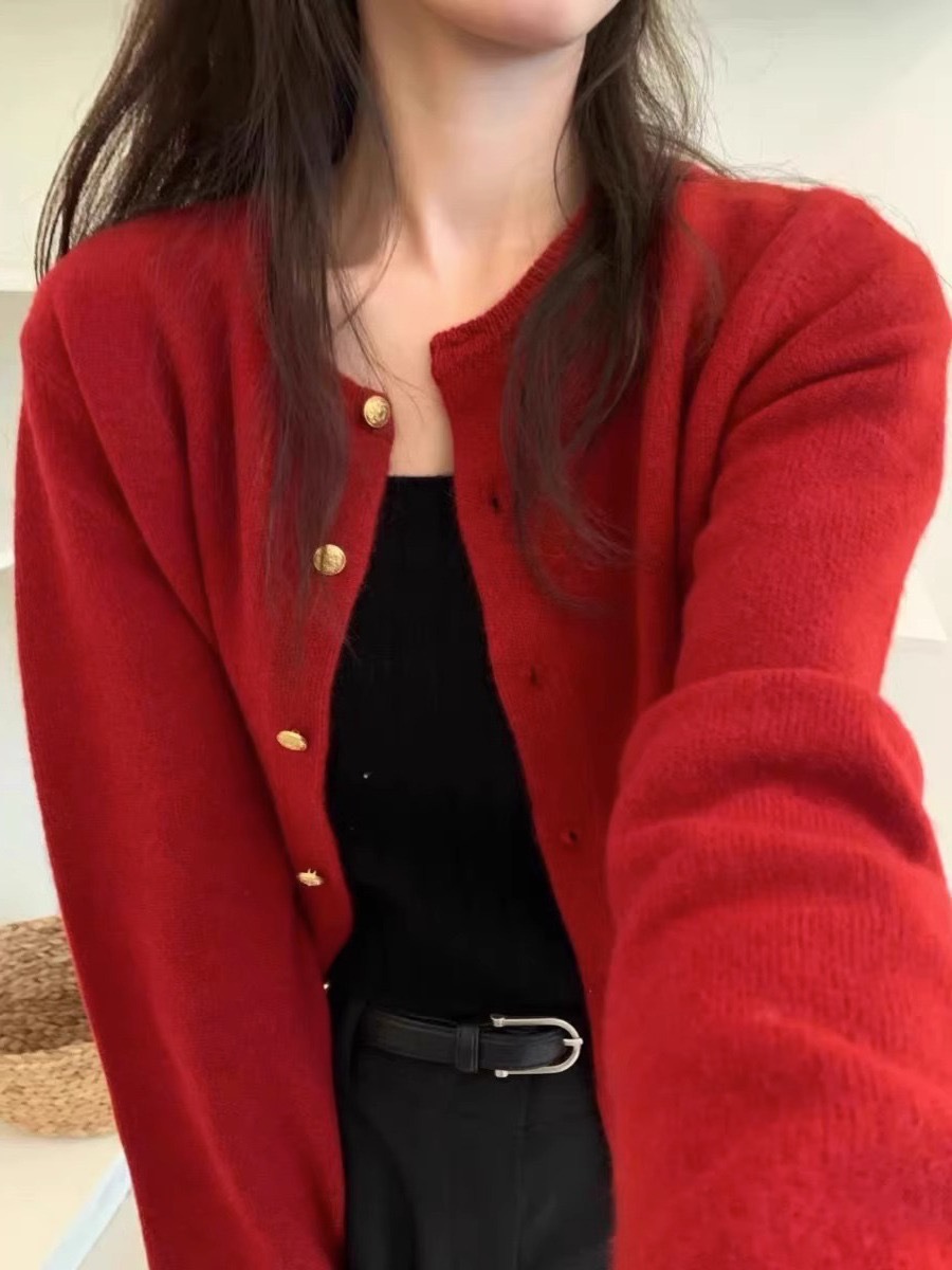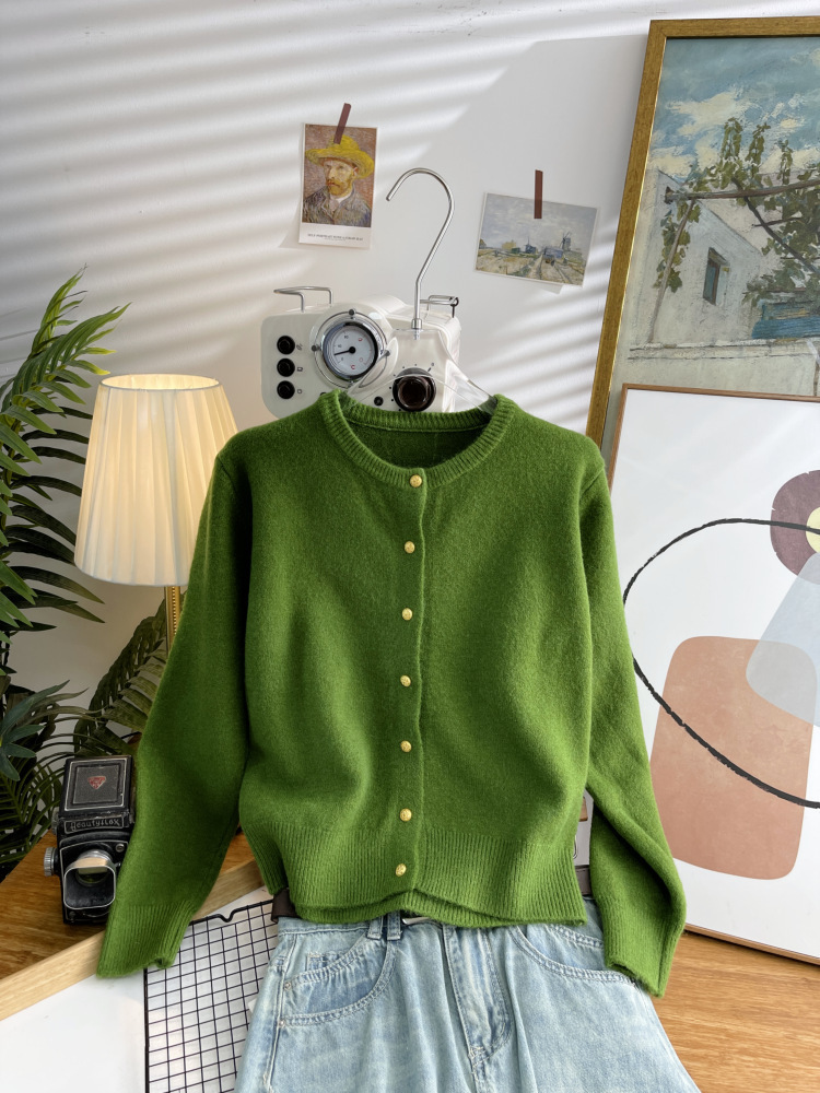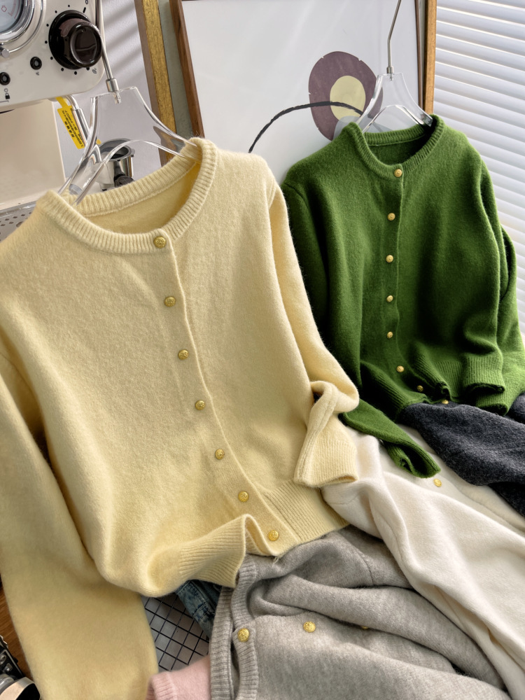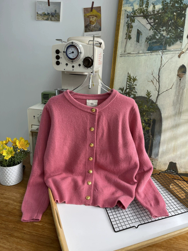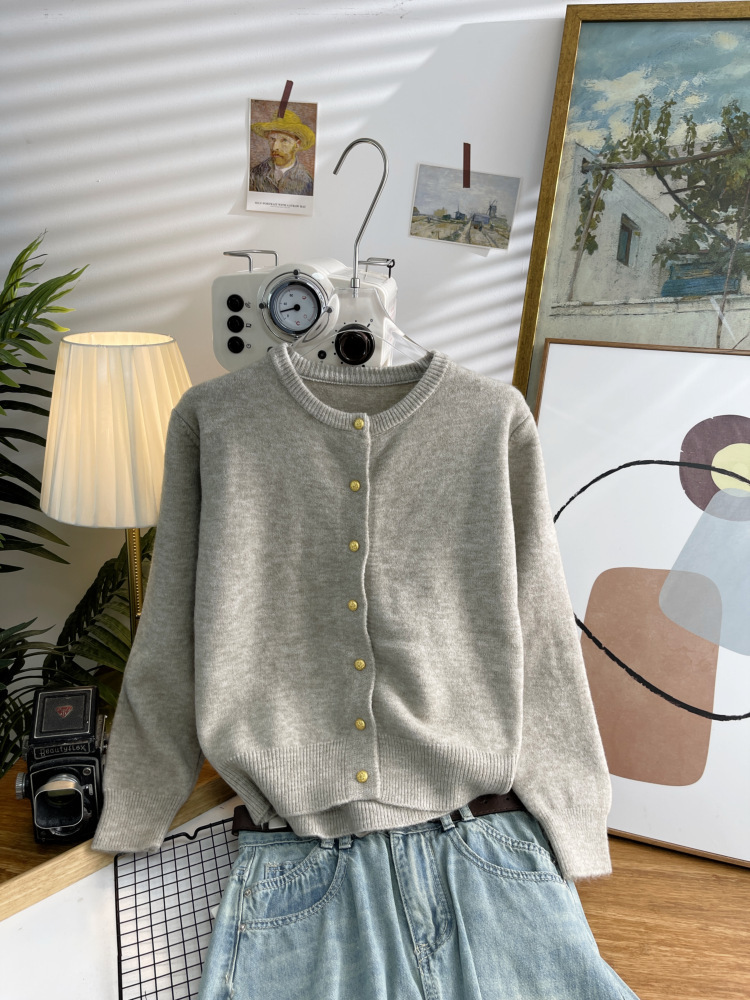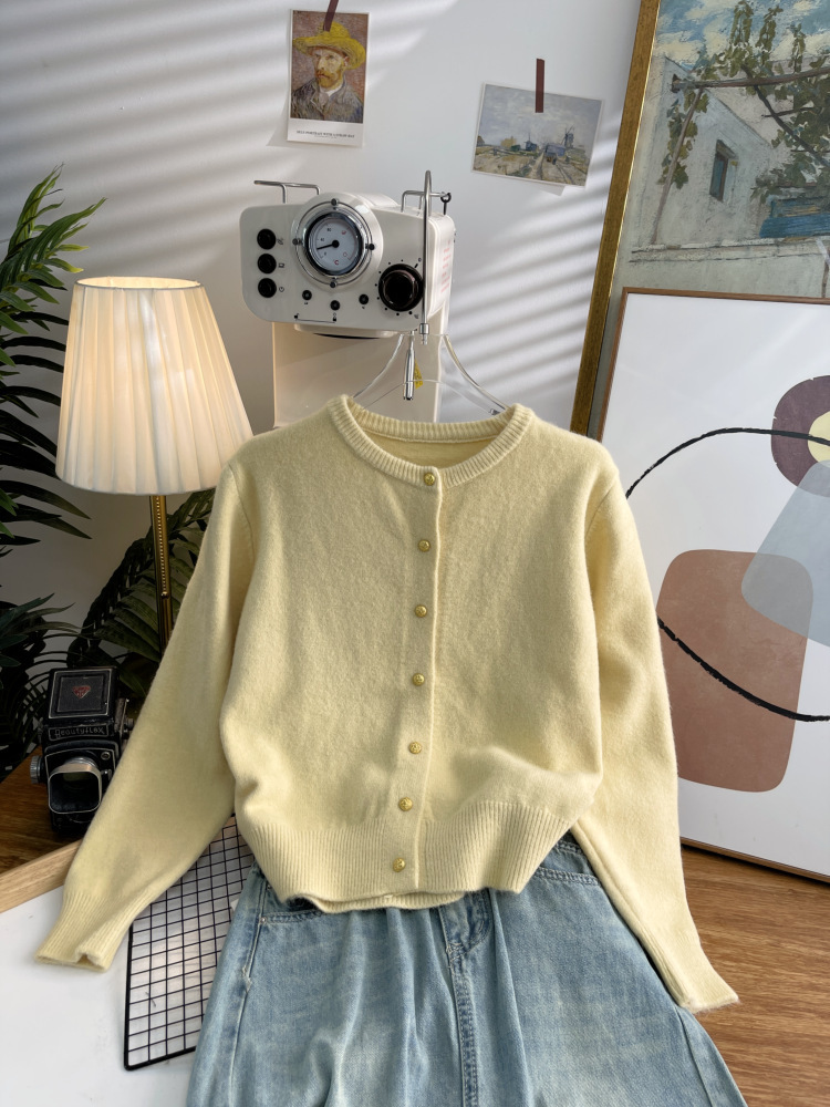 Le Fear [Milk fufu] 부드러운 니트 카디건 게으른 스웨터 여성의 가을 겨울 쇼트 코트 소프트 왁스 레트로스토어 가기