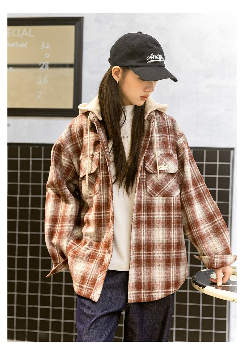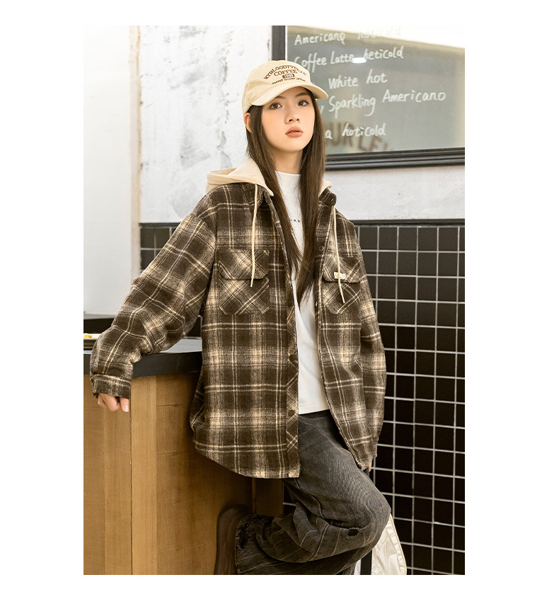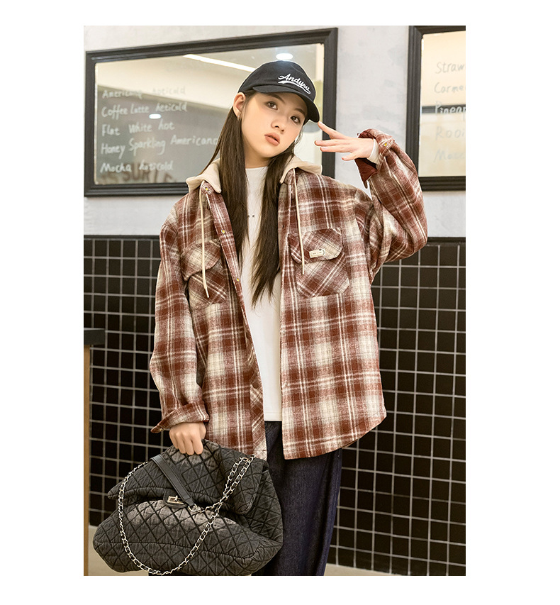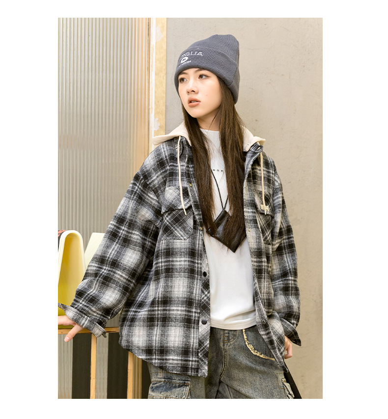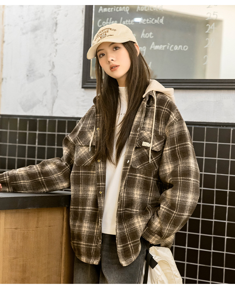 소녀들의 가을과 겨울 후드 체크 셔츠 2024 새로운 한국식 고등학생 면 탁상스토어 가기